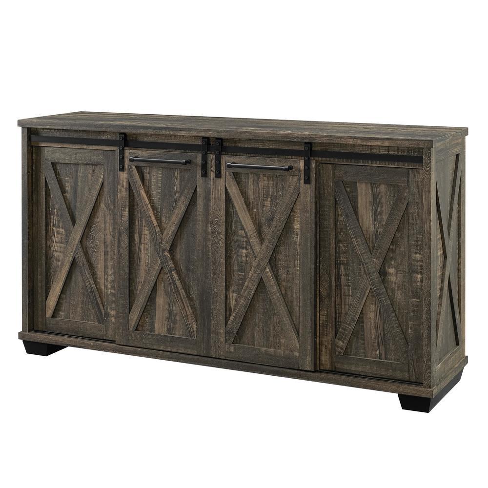 Rivington 58 in. Freestanding Infrared Electric Fireplace TV Stand with Sliding Barn Door in Barnboard Gray