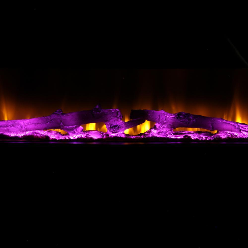 Stylish and contemporary, this wall mounted fireplace comes with a curved glass front and will add a chic, aesthetic look to any room. A choice of traditional log or crystals for the ember bed and with 7 color lighting options, it is sure to set any mood. Mount on the wall or use the stand to add flair and heat anywhere. Remote control included.
