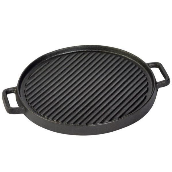 12 in. Pre-Seasoned Cast Iron Round Reversible Grill/Griddle with 2-Side Handles Non-Stick