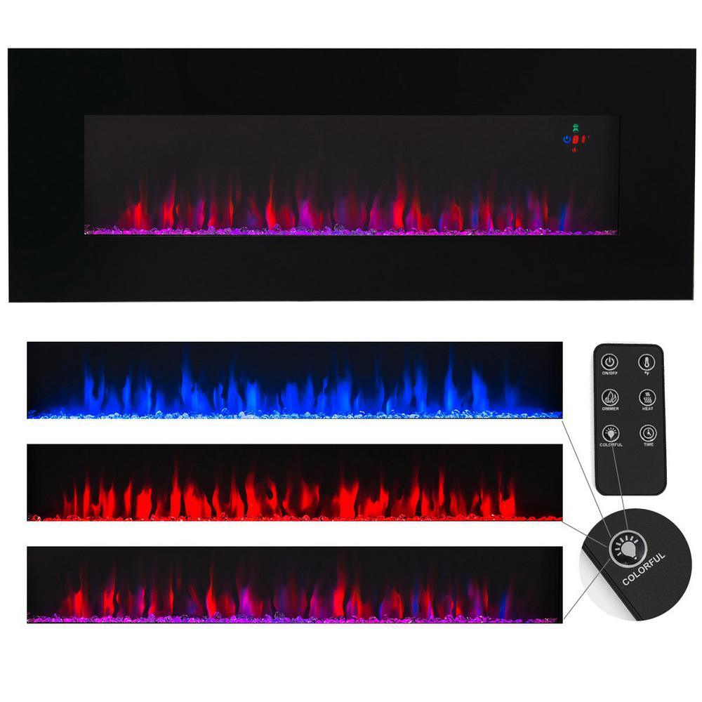 50 in. W Black Wall Mount Smokeless Electric Fireplace with 3 Changeable Flame Colors and Remote Control