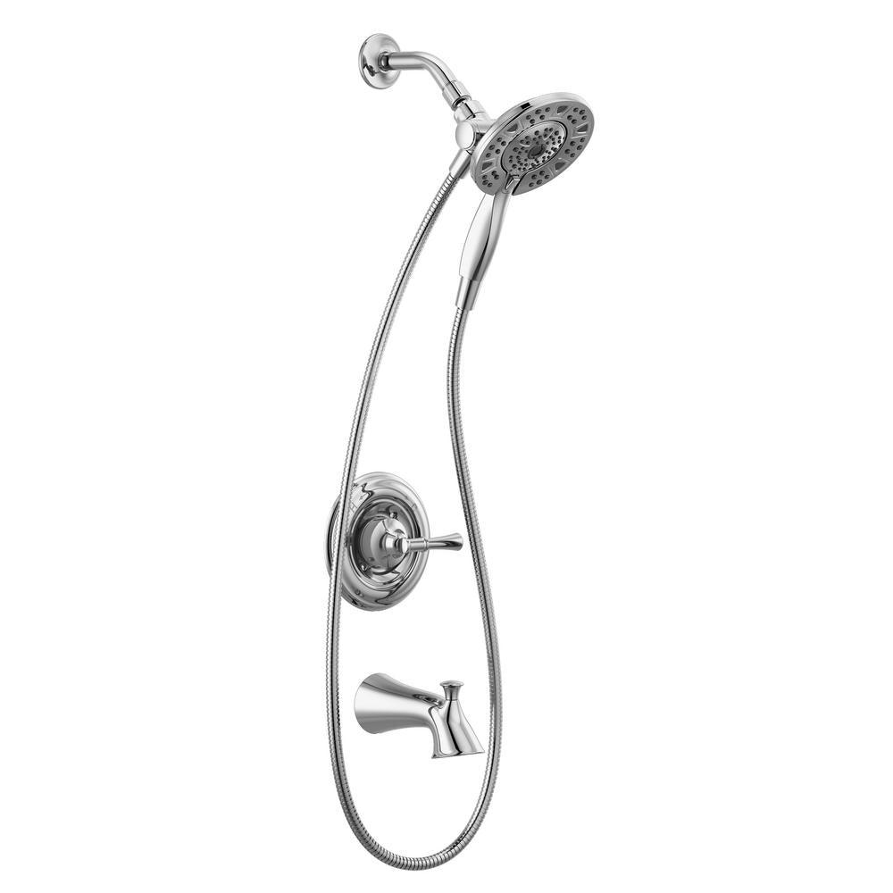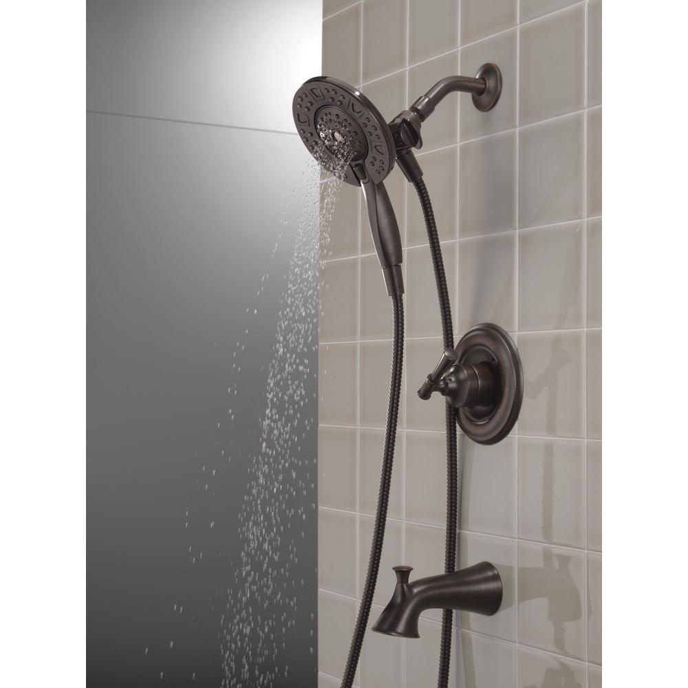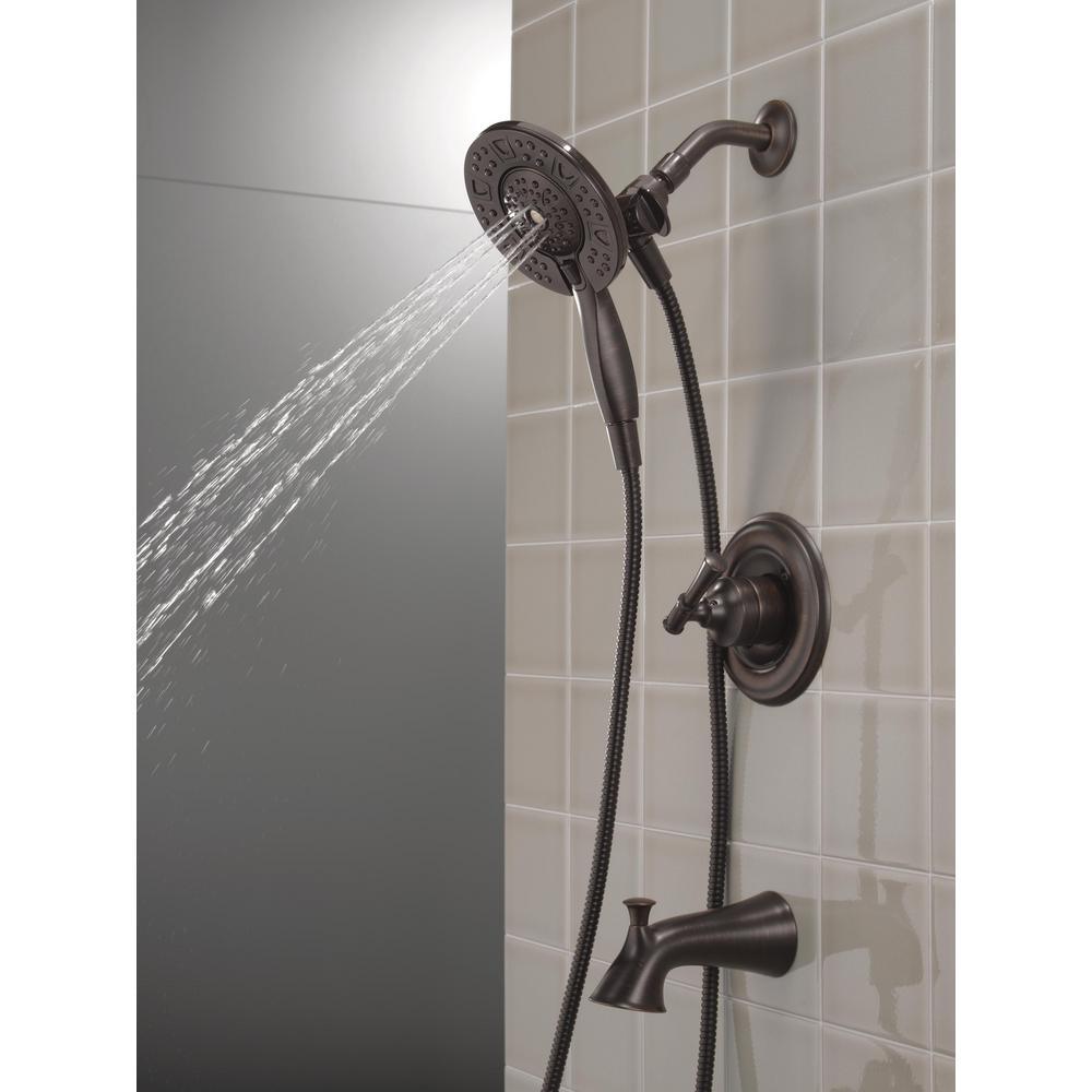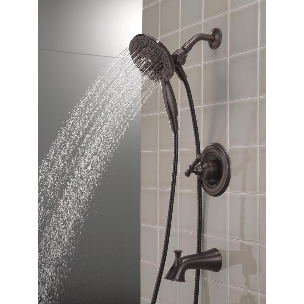 The Chamberlain collection's subtle flares and circular form create a stylish composition in a trim design. The Delta In2ition 2-in-1 Shower features a detachable hand shower which can be used separately from or simultaneously with the shower head. This integrated dual-functionality gives you maximum flexibility without sacrificing warmth, as you can choose to have water streaming from the shower head only, the hand shower only or both the shower head and hand shower at once. The pause setting gives you ample space for shaving, lathering and other shower tasks, then easily restarts the water with the temperature where you left off. This spray setting helps you conserve water, so you can worry less about depleting your supply of hot water - and you help the environment too. Delta WaterSense labeled faucets, showers and toilets use at least 20% less water than the industry standard-saving you money without compromising performance.
