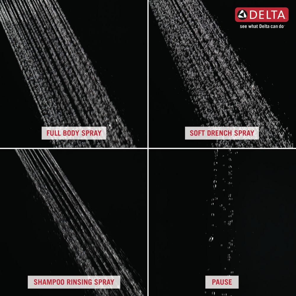• Spray settings include: full body spray, shampoo rinsing spray, drenching rain spray and pause