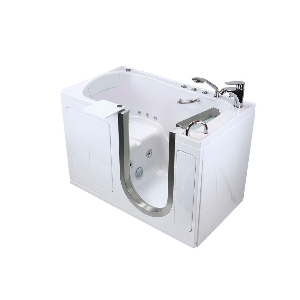 Ella Elite 52 in. Acrylic Walk-In Whirlpool Bathtub, Right-Hand Door, White, 2-Piece Fast Fill Faucet, 2 in. Dual Drain