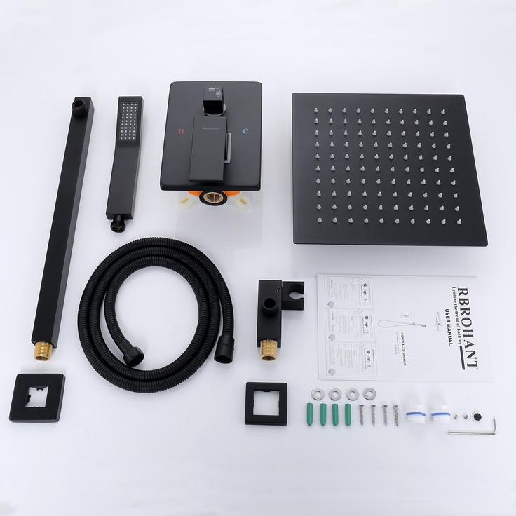 Includes: 10 in. rotatable square rain shower head (304 stainless steel), handheld shower head (all brass), shower faucet valve (all brass), 15.7 in. shower head arm (all brass), 60 in. shower hose (stainless steel and 2 functions concealed mixer valve