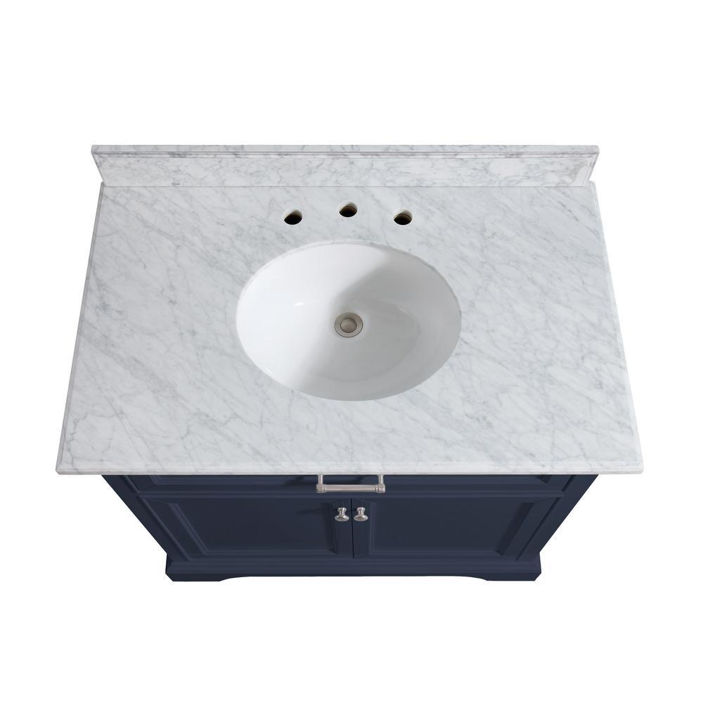 Windlowe 37 in. W x 22 in. D x 35 in. H Bath Vanity in Navy Blue with Carrara Marble Vanity Top in White with White Sink