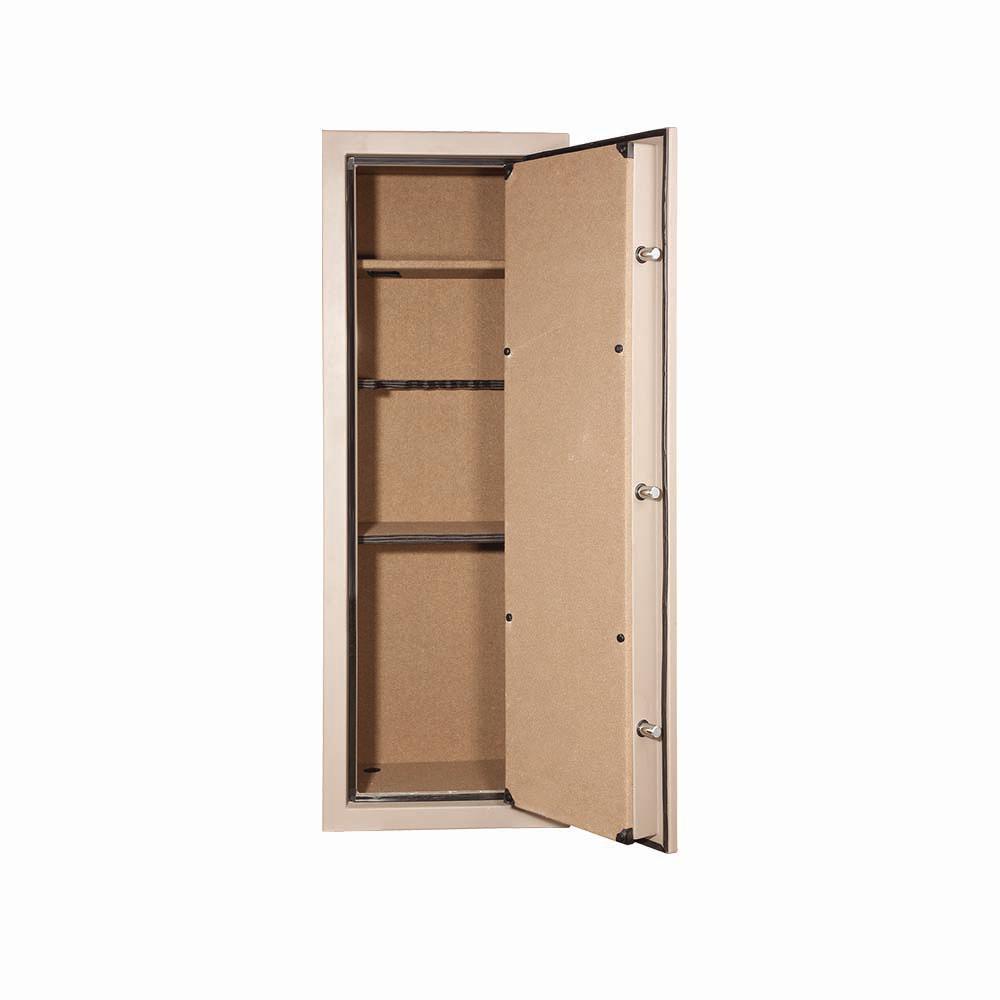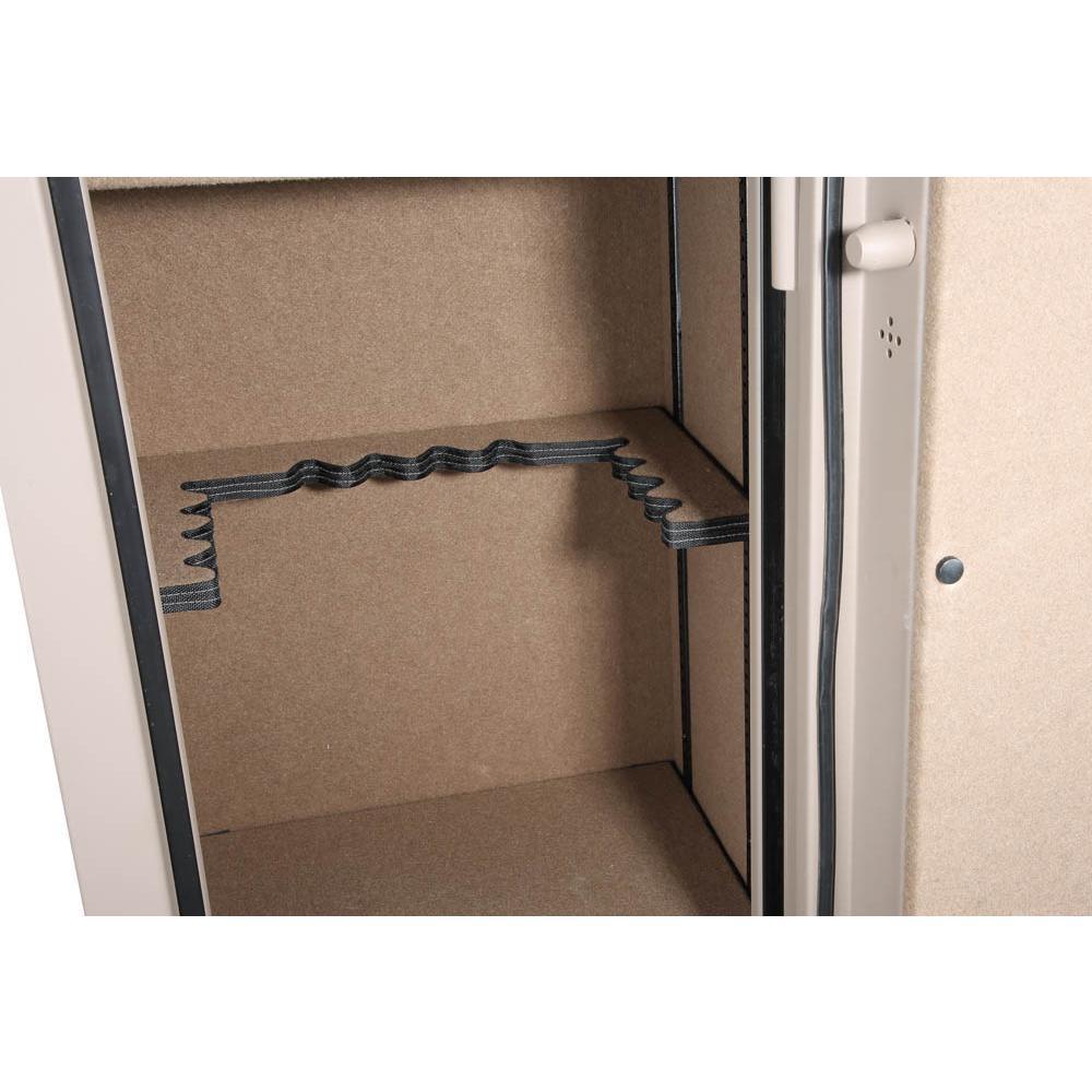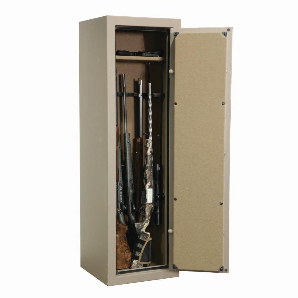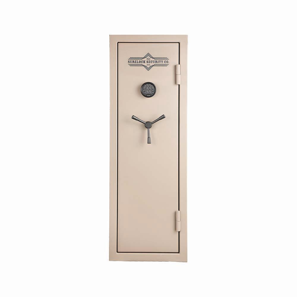 SureLock Security Companys Cadet Series Gun and Home Safe provides maximum security, for all of your valuables, at an affordable price. The Cadet 12 Gun and Home Safe is the smallest option in the Cadet lineup and will hold up to 12 guns with a total of 5 locking bolts (3 active). It has 1 adjustable, or removeable, shelf, 1 gun rack, and has a matching tan interior and exterior finish. The Cadet 12 is made of 14-Gauge steel and has a 30-minute fire rating at 1400°F. This gun and home safe is the perfect size for a beginning gun owner who is looking to protect their household, as well as a few valuable possessions. Backed by SureLock Security's Lifetime Replacement Program the Cadet Series Gun and Home Safe offers superior, reliable protection to safely secure your possessions and firearms.