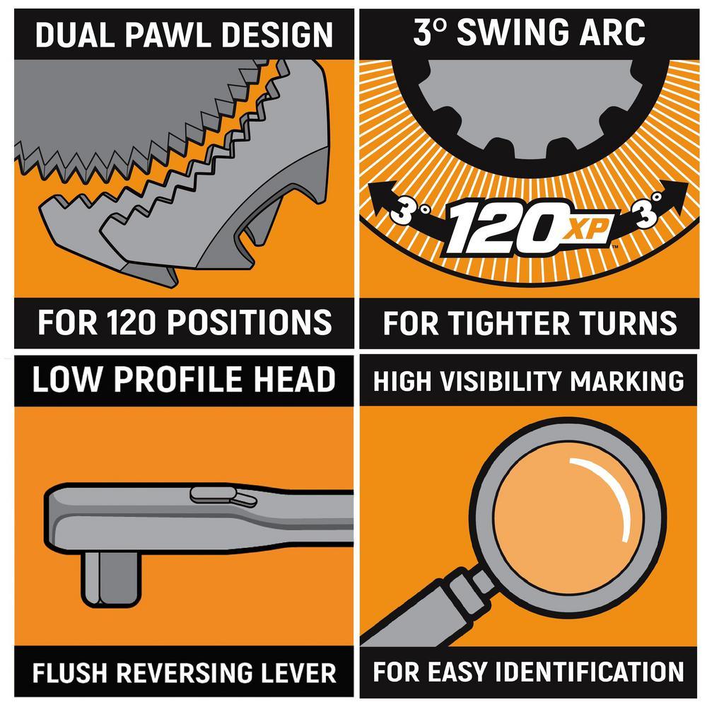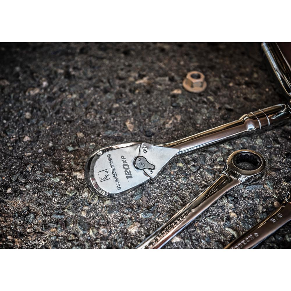 Since being patented in 1996, GearWrench has been the leader in ratcheting wrenches, with more styles and sizes than any other brand. GearWrench premier mechanics hand tools are designed to meet the tough requirements of Automotive Technicians and Industrial users. Their hand tools are made from chrome steel alloy, which is specially formulated and heat treated for strength and superior resistance to corrosion. The 120XP product line is forged with these same values, strong enough to hold up to the rigors of fulltime use yet precise enough to offer a 3 swing arc to access those hard to reach fasteners.
