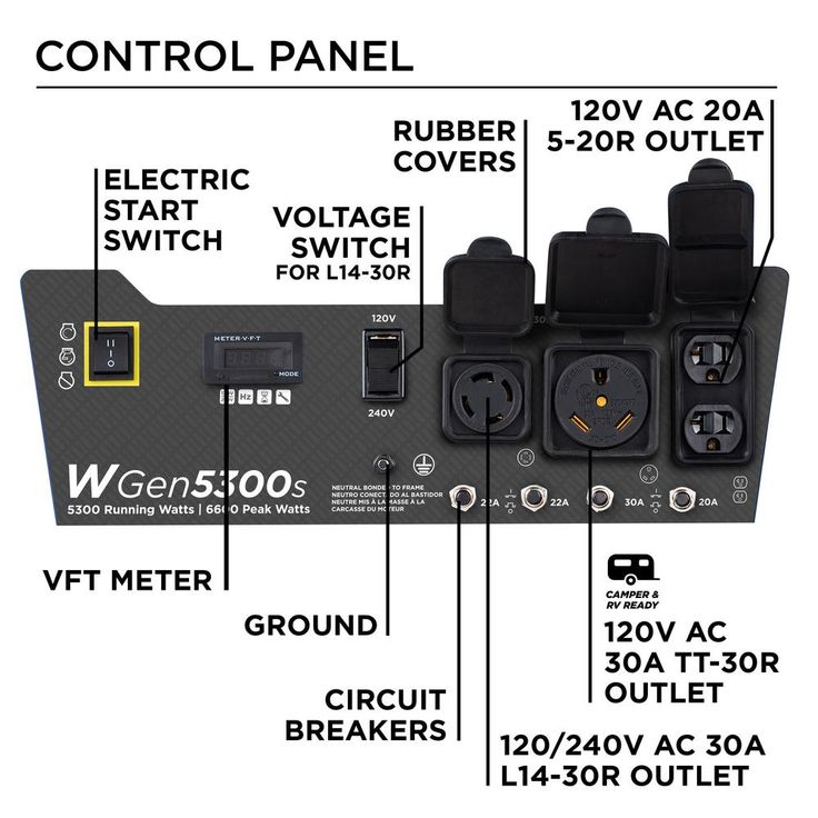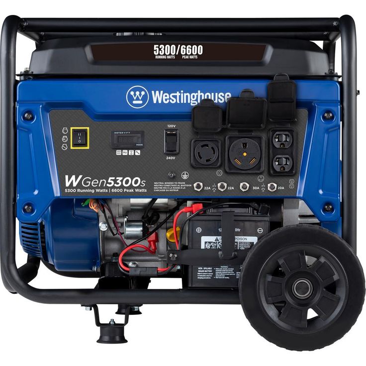 The Westinghouse WGen5300s is a versatile solution for all your power needs from your home to your travel trailer when you’re looking for a dependable backup power supply. The WGen5300s produces 5,300 peak watts and 6,600 running watts with a powerful 274cc 4-Stroke OHV Westinghouse Engine constructed for durability. Running for up to 13.5 hours on a 4.7 gal. (18L) tank of gas, it's conveniently equipped with a built-in fuel gauge, automatic low oil shutdown, and electric start with manual choke. The L14-30R outlet is Transfer Switch Ready for total household power and eliminates the hassle for annoying extension cords or power strips. Combined with an RV Ready TT-30R outlet, all this generator needs is a one cord hookup to ensure your recreation vehicle or home is ready to go for air conditioners, refrigerators, sump pumps, and home necessities. The intuitive control panel includes the VFT Data Center to share real-time updates on maintenance information, making it easy to care for the WGen5300s with long life and lasting utility. Engineered into a compact hardened-steel frame with added roll bars, foam grip handle, and never-flat wheels, it lets you easily move this generator from storage to use. The WGen5300s Portable Generator is complete with a 3-Year Warranty and Lifetime Technical Support to ensure your confidence can be backed by our nationwide customer service and support network.