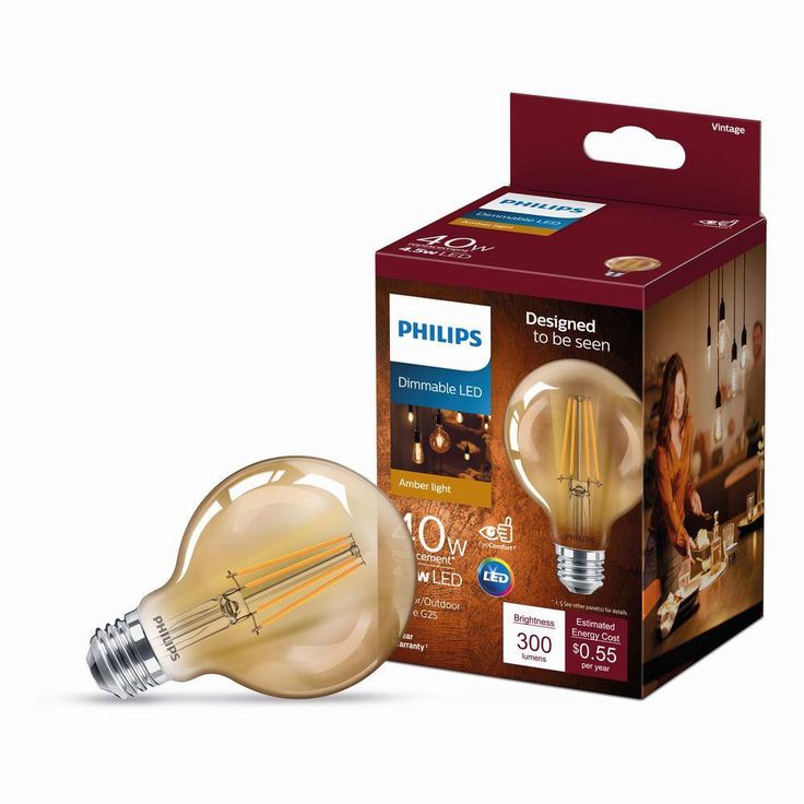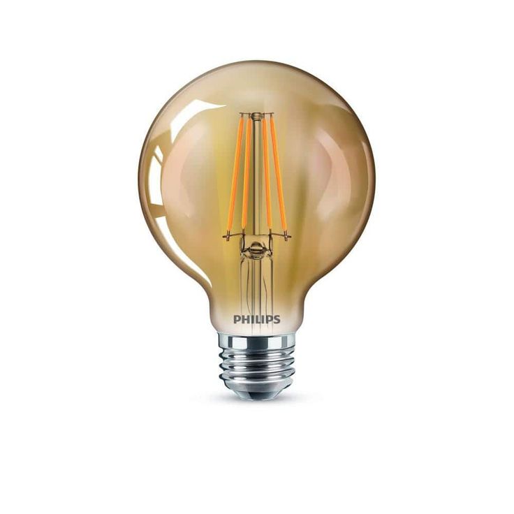 Introducing the new Philips Vintage LED light bulb family, a collection that is reminiscent of familiar incandescent bulbs from the recent past. Available in an array of giant shapes, candles and other familiar form factors, they provide a seamless fit across your space collectively. This 40-Watt equivalent glass bulb stands out when used as a statement piece, adding a sense of nostalgia to your interiors. The intricate LED filament emits a familiar orange amber glow all around through its crystal clear, fully dimmable glass bulb, perfect for mood setting and style creation inside and outside your home. With no visible flickering and an instant full level brightness when switched on, you will also enjoy soft and evenly distributed warm white light with that vintage charm of yesteryear across your spaces.