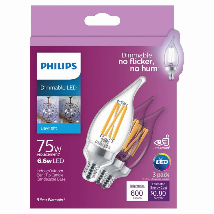 The look you love with the performance you expect. Philips 75-Watt Equivalent Dimmable Clear Glass LED BA11 light bulbs are a smart energy saving alternative to your standard incandescent with a classic glass design. This Philips 6.6-Watt LED BA11 candle light bulb in natural daylight is the perfect replacement for anywhere traditional candle shaped bulbs with candelabra base are used, such as chandeliers, foyers, recessed coves and bedrooms. The classic glass design with exposed filament offers a nostalgic, warm appearance.