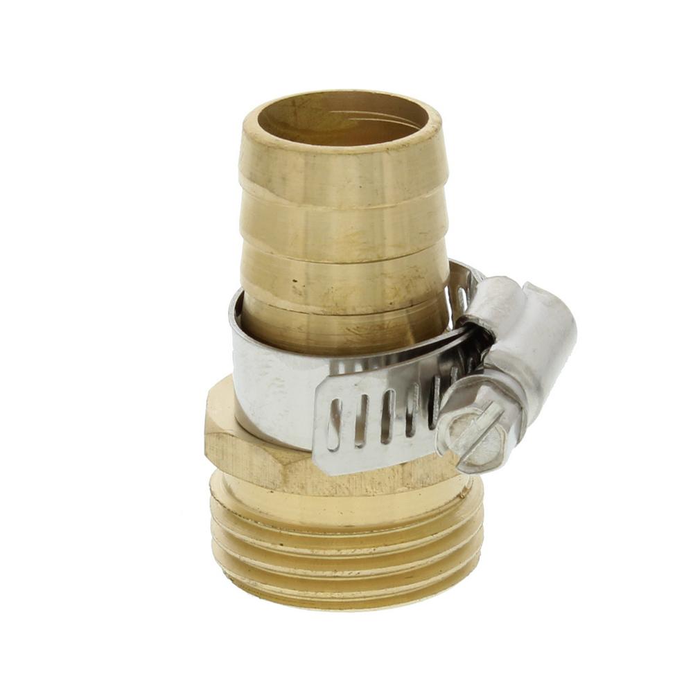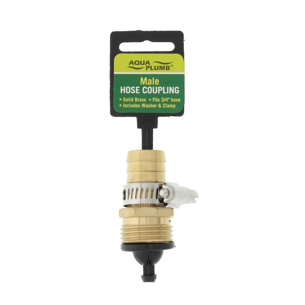 This AquaPlumb Solid Brass Male Hose Coupling fits a 3/4 in. hose fitting. This product includes a washer and clamp. This coupling is a male connection and is made of solid brass for durability.