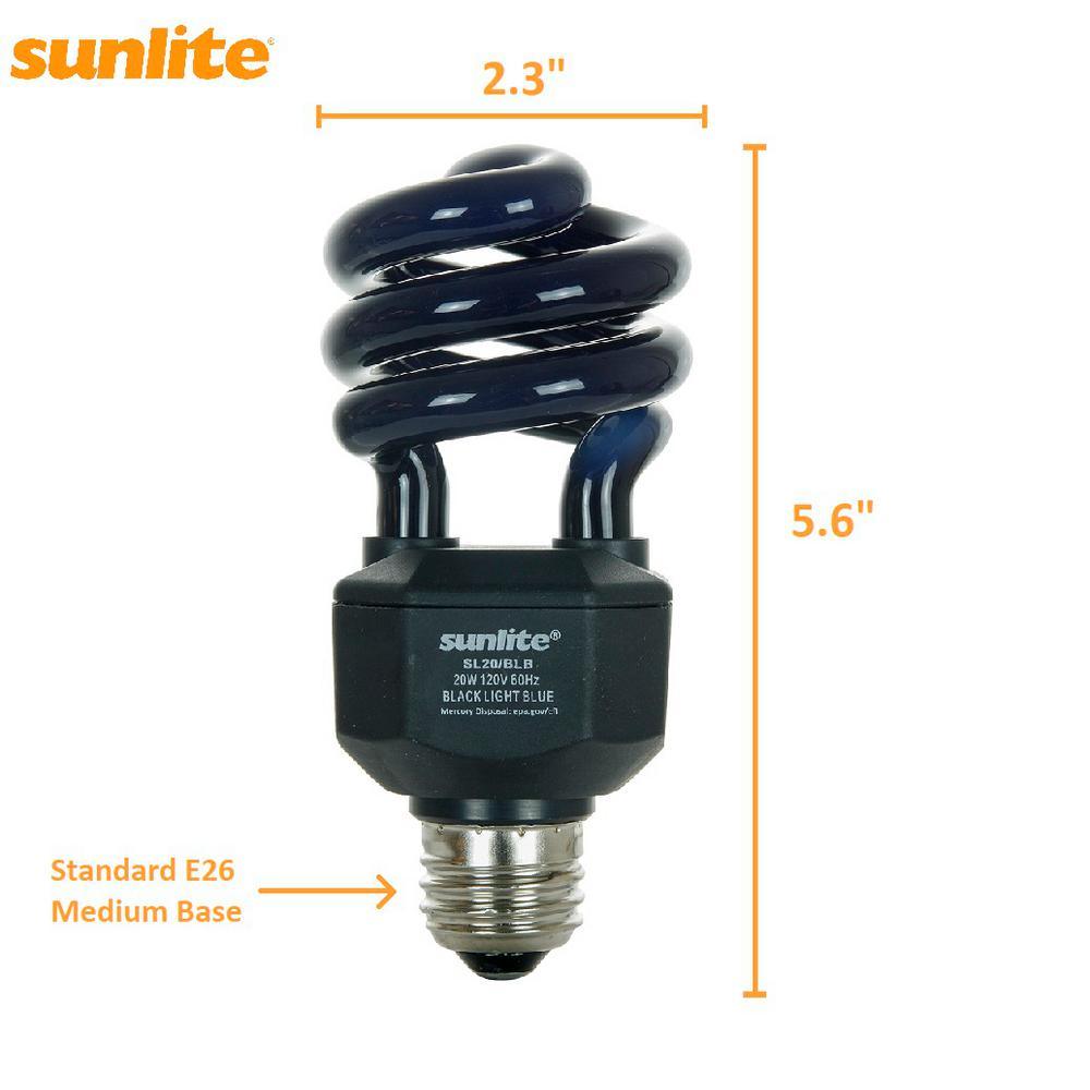 - CFL black light (BLB) - the Sunlite 20-Watt blacklight bulb (BLB) emits ultraviolet (UV-A) light at 463nm wavelength perfect for lighting up reactive surfaces while not illuminating the surrounding areas