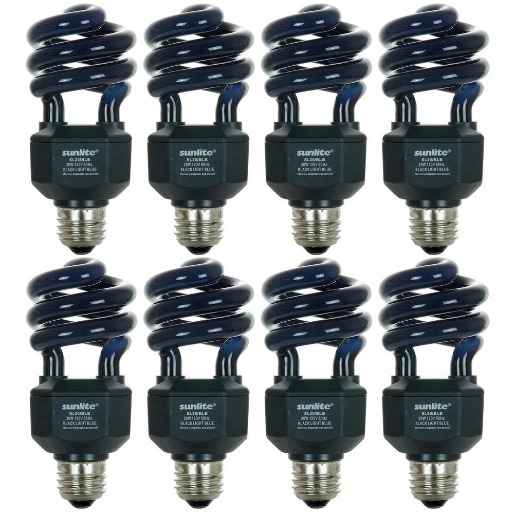 20-Watt CFL Spiral Black Bulbs (BLB) UV Blacklight E26 Base Party Light Bulbs (8-Pack)