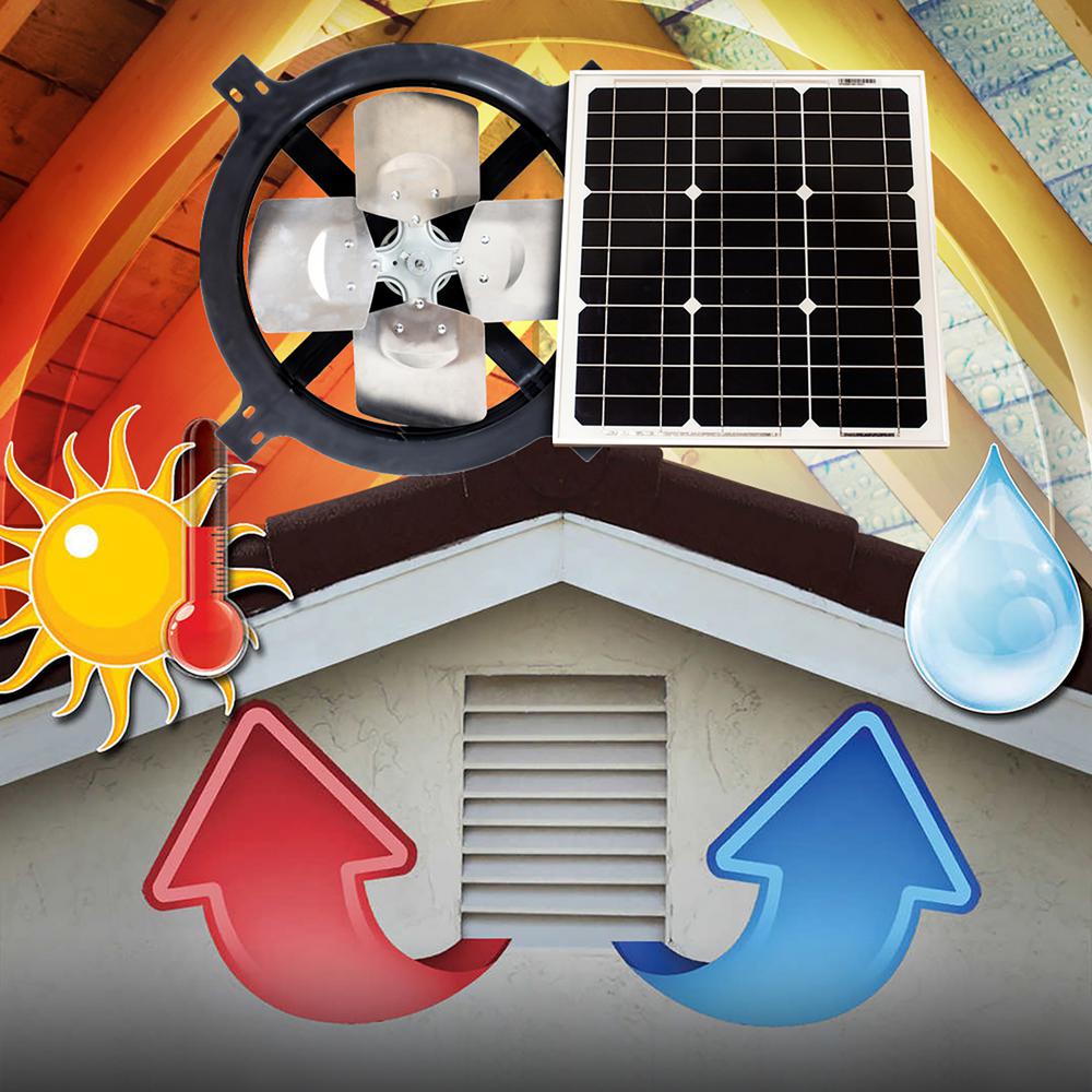 The Solar Powered Gable-Mounted Attic Vent operates during the day and collects power from the sun to convert into electricity. There's no electrical hookup or electrical costs ever. It's easy to install and easy on your wallet. And that means environmentally friendly, budget conscious operation for year-round comfort.