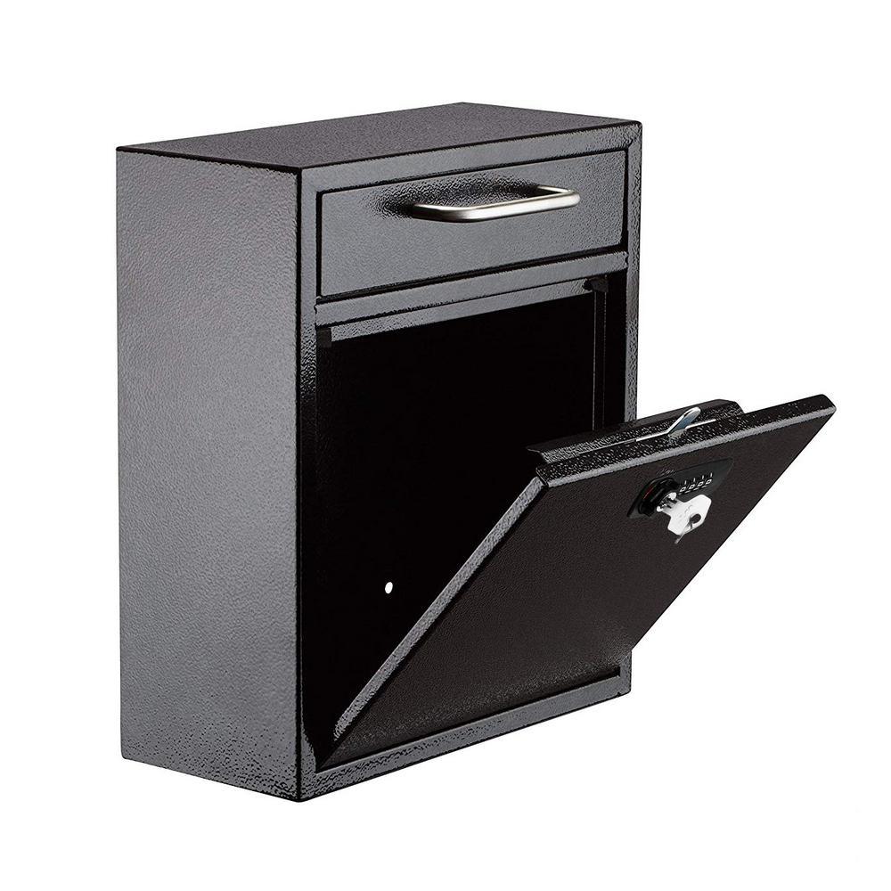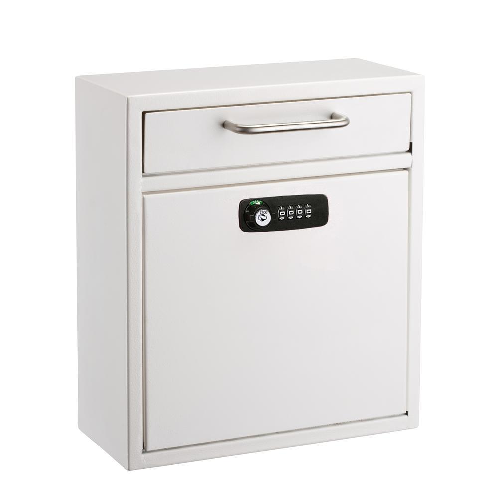 The AdirOffice Locking Drop Box Wall Mounted Mailbox is designed to hold keys, cash, envelopes or other important materials that need to be dropped off after hours. Constructed of durable, heavy-duty 16-Gauge galvanized steel to provide long-lasting strength and furnished using a powder-coated, scratch-resistant finish. Wide enough to accommodate bigger items than your average drop box slot. This secure drop box features an anti-fishing bin door that accepts letters, checks, keys and other small bundles, To prevent theft, a anti-pry latch locking mechanism is used. The locking access door features a commercial grade 12-disc wafer lock and includes 2 laser cut keys to ensure the items inside are safe and secure. Select user-set combination lock or key lock for enhanced security against unauthorized access. To finish it off, this mailbox includes 4 mounting screws, 4 stainless steel washers, a driver bit and a drill bit for quick and easy installation of the box wherever you'd like to mount it.