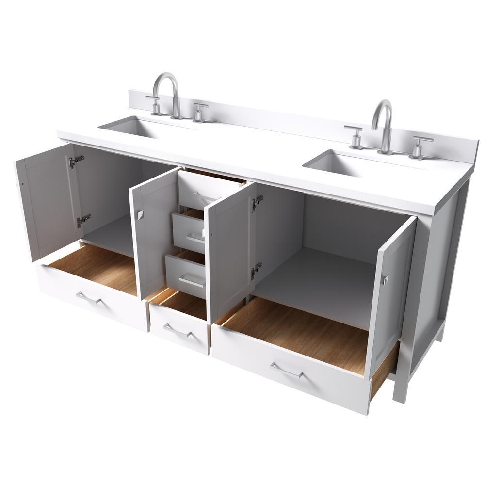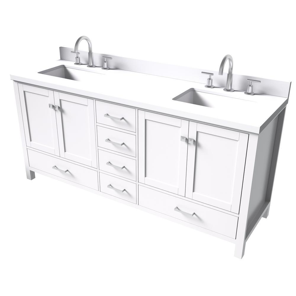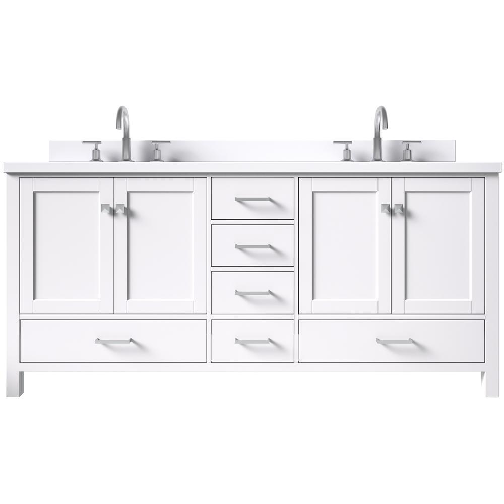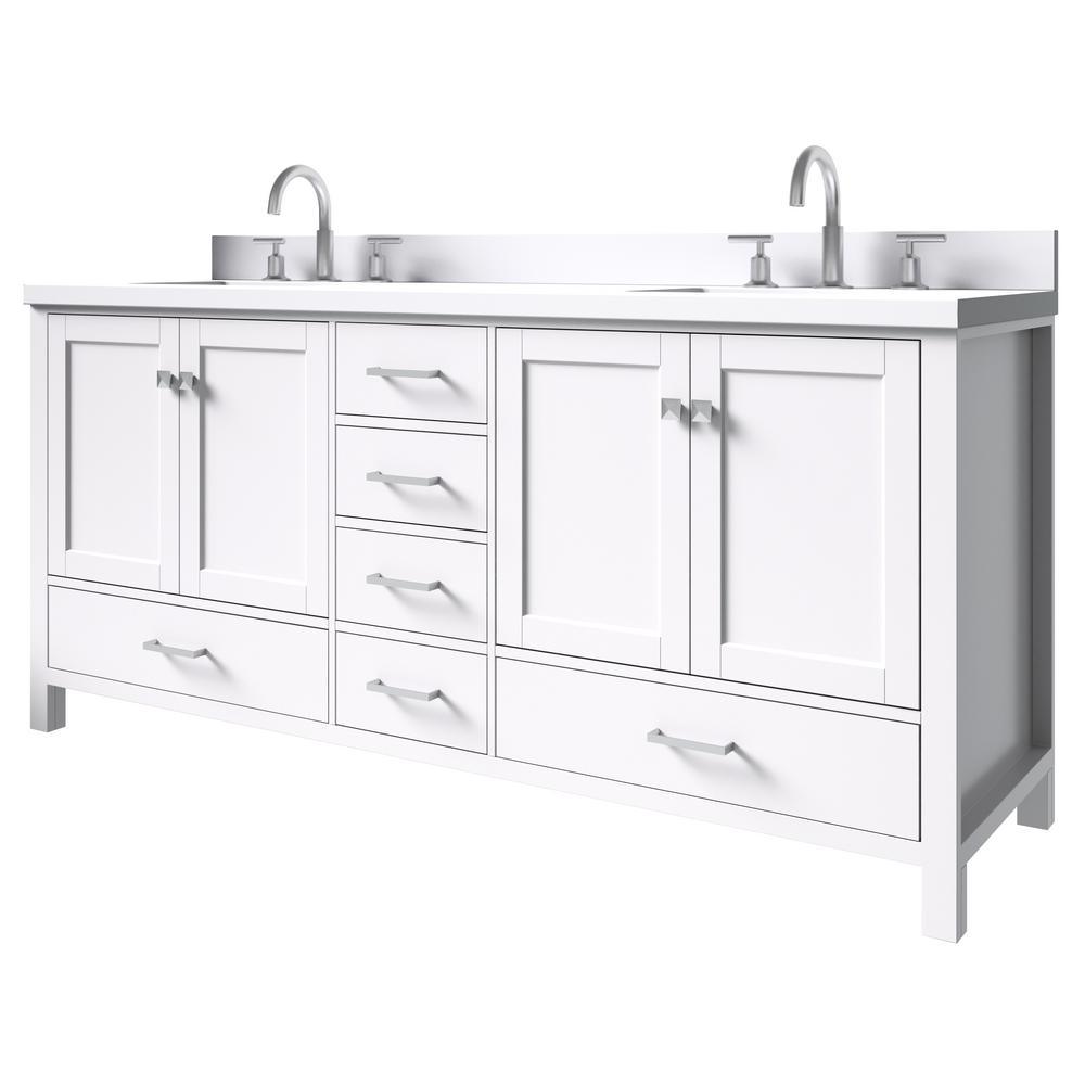 Cambridge 73 in. W x 22 in. D x 35 in. H Bath Vanity in White with Quartz Vanity Top in White with White Basin