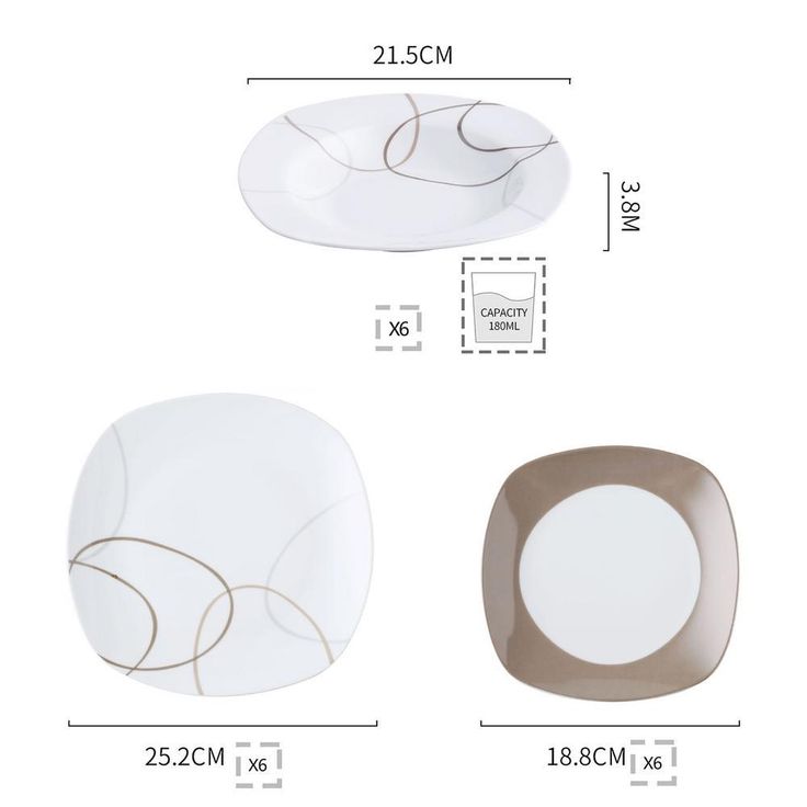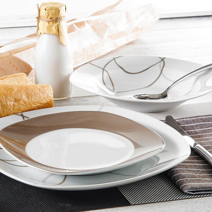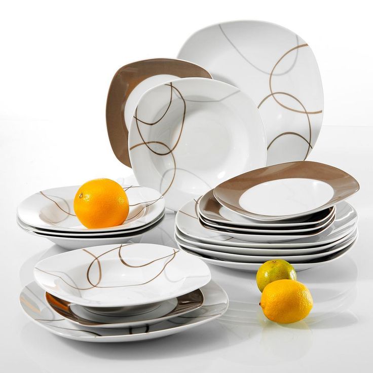 Nikita 18-Piece Casual Ivory White With Brown Lines Porcelain Dinnerware Set (Service for 6)