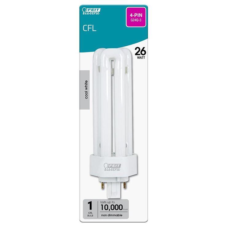 The BPPLT26E/41/HDRP Feit Electric 26-Watt GX24Q-3 Base CFL 4100K cool white light is a PL shape for your general purpose and task lighting needs. It replaces traditional bulbs with an affordable compact fluorescent technology that produces a light output of 1600 Lumens, using only 26-Watt of electricity. Feit Electric CFL bulbs have a relatively cool running performance, an average life of 10,000-hours/9.1-years and are RoHS/FCC compliant. Choose a dependable, general purpose lighting bulb for residential or commercial applications.