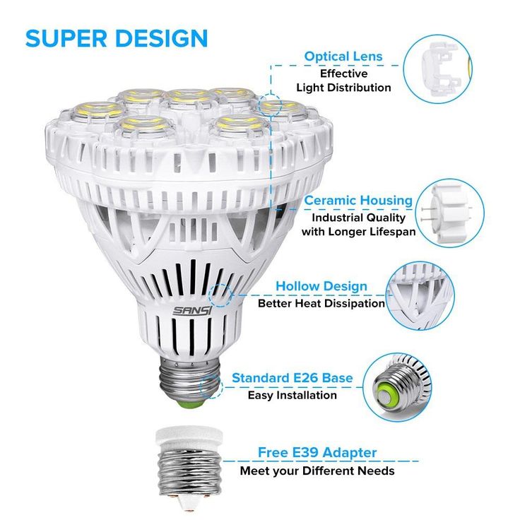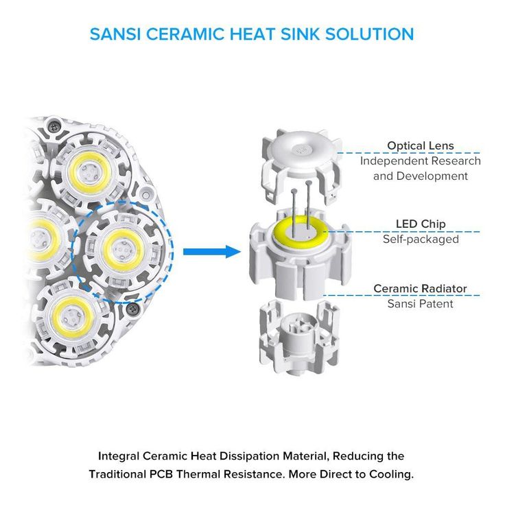 SANSI's Rugged hollow housing design, imported premium led chips and patented ceramic heat dissipation technology ensure excellent heat dissipation and long-lasting performance. The 5000K daylight comfortable glow provides no harsh-glare healthy light. Flicker-free, no buzz or noise.