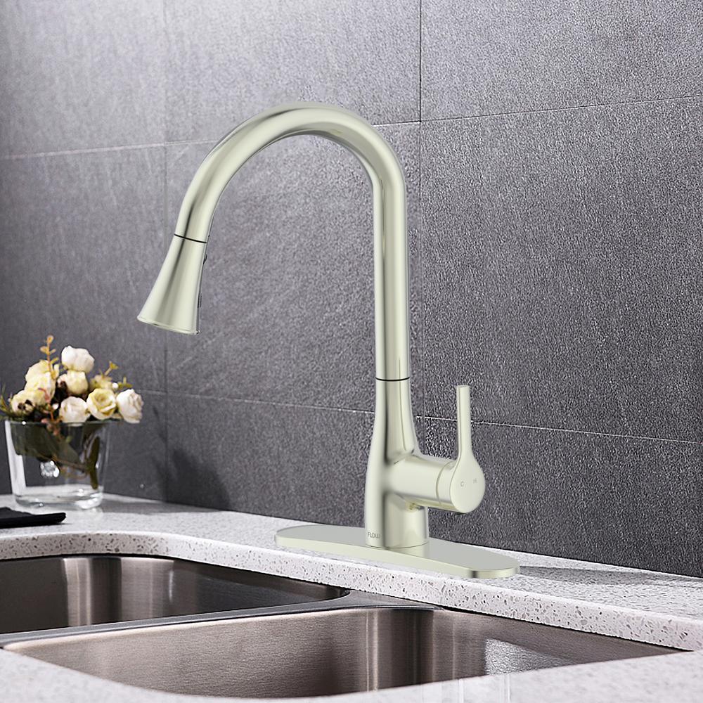 Sleek design and trusted construction come together with the FLOW Series Classic Kitchen Faucet. Featuring a retractable dual function spray head, durable ceramic cartridge, and metallic waterway, the FLOW Classic is the simplistic upgrade your kitchen deserves. The easy installation process allows you to fit this faucet in a single or three hole sink, and the luxurious finishes compliment kitchens of all styles.
