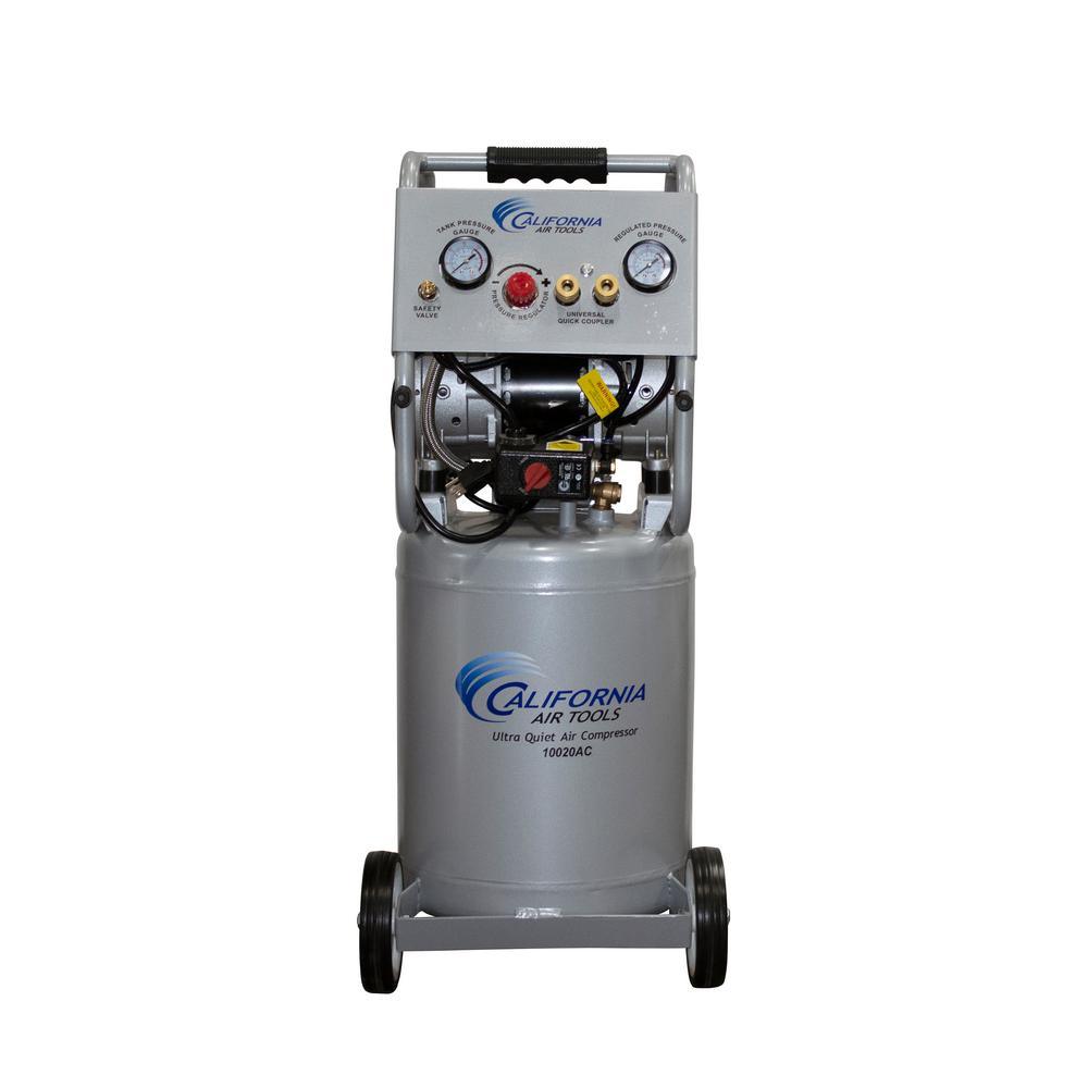 The California Air Tools 10020AC Ultra Quiet and Oil-Free Air Compressor is designed to be 1 of the quietest 2.0 Hp air compressors in the industry having only 70 decibels of sound. The Powerful 2.0 HP motor operates at only 1680 RPM creating less noise and less wear. The SP Series of Ultra Quiet Air Compressor Motors have been designed to increase duty cycle and allow for longer continuous run times. The Oil-Free Dual Piston Pump System is engineered for high performance and durability. TheCAT-10020ACAir Compressor has a Oil-Free Dual Piston pump designed to have a life cycle before wear of3000 Plus hours compared to other comparable air compressors with life cycles of 500-hours or less. The Oil-Free pump allows for use in a variety of temperatures(cold starts) and uneven terrains (no oil in the pump). The Easy Start Valve feature allows for a easier start up using less starting amps. The Easy Start Valve releases a small amount of air from the pump at start up to produce a no-load condition allowing the motor to spin freely. This no-load start up requires less amps for a easier start up in cold temperatures. The large 10 Gal. Lightweight (62 ibs) and Rust-Free Aluminum Air Tank with wheels, makes it very easy to move around the jobsite, shop or garage Designed for the person looking for Power, Air Flow, Less Service and Maintenance with at Least 30% Less Noise.