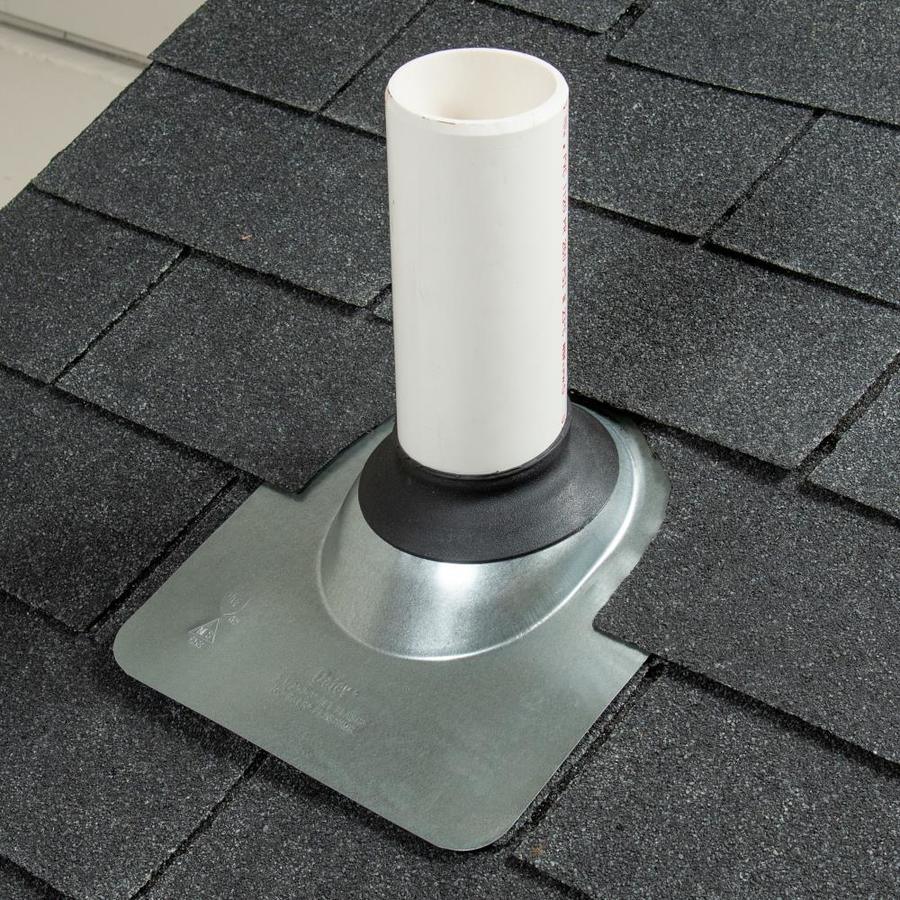 The galvanized base is made of 24 gauge galvanized steel and 11-in x 14-1/2-in in size Patented All-Flash® collar has a tear-away ring allowing the flashing to seal different vent pipe sizes from 1.5-in to 3-in in diameter Self-sealing collar slides over vent pipe and requires no caulking (No-Calk®) Rated 180 degree (F) continuous heat and approved for Type "B" Installations Suitable for commercial or residential use, with roof pitches up to 0 - 40 degrees Not for hot-mopped or built up roofs The Oatey All-Flash® No-Calk® roof flashings carry a limited warranty with a duration that is equal to the lifetime of the roof on which the flashing is installed