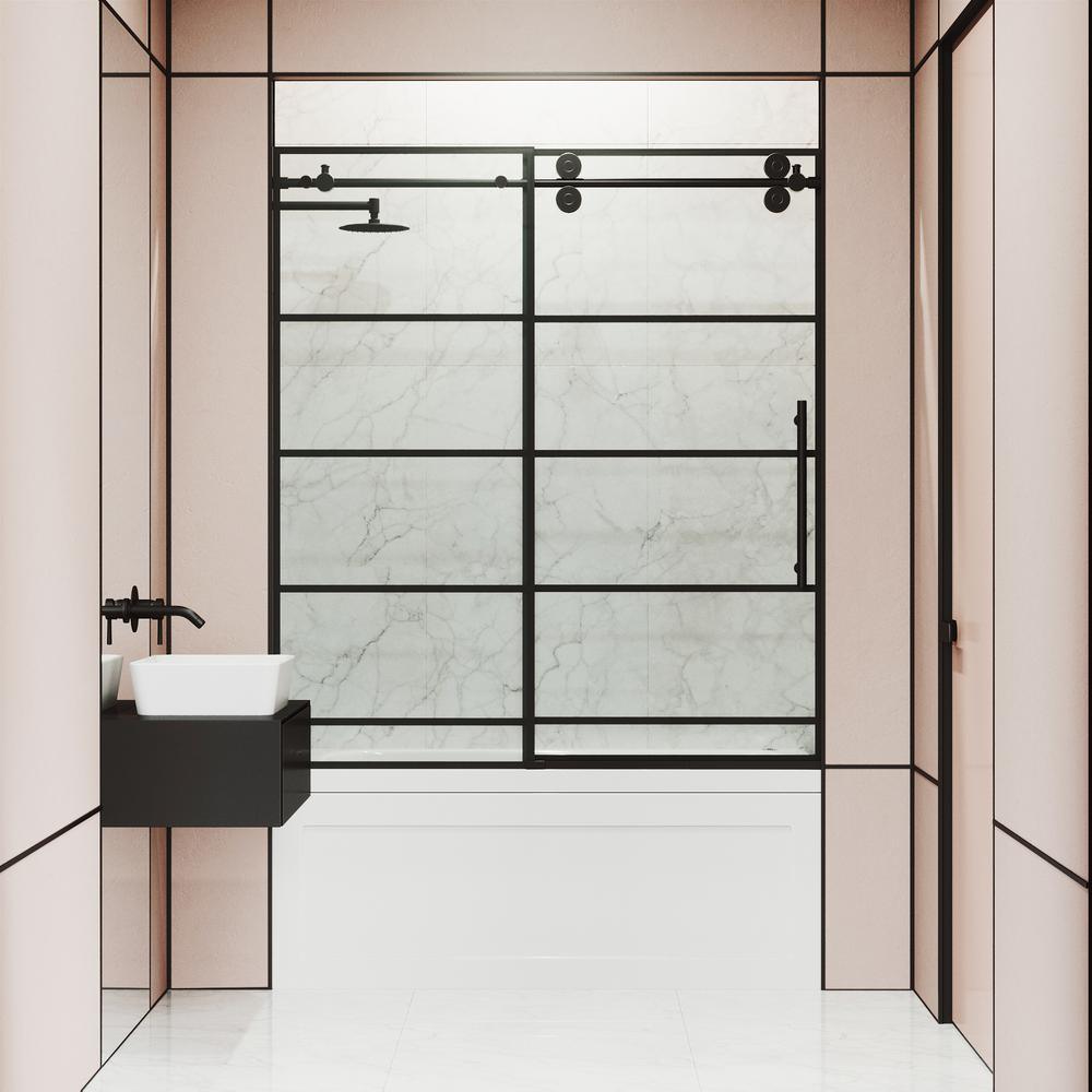 The VIGO Grid Elan Adjustable Frameless Tub Door is everything you want and need to complete your bathroom remodel. Made with VIGO's proprietary RollerDisk Technology, this door has built-in adjustability to ensure that it is a perfect fit in your shower. Flex-Sizing and SmartAdjust Technology ensure that your shower door will remain level despite inevitable shifts that occur as homes settle. This door features resilient tempered glass to prevent dangerous splinters and shards. With the option for right or left-side installation, the VIGO Elan is as versatile as it is sturdy. Stainless-steel hardware outfitted in a 7-layer plated, rust-free matte black finish completes this one-of-a-kind design.