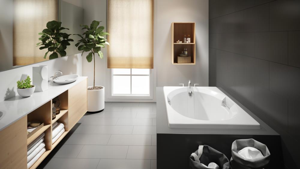NOVA’s crisp rectangular deck cradles a soft oval interior, bringing elegant balance to a modern bath. The gleam of white acrylic and discreet jet layout create a quietly luxurious focal point. Style it with honed stone surrounds and warm wood accents to elevate the spa vibe. This piece is a must-have for a tranquil, indulgent retreat at home.