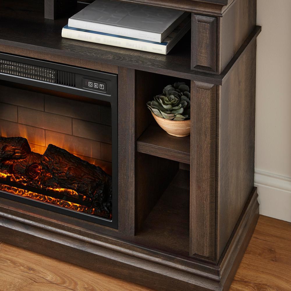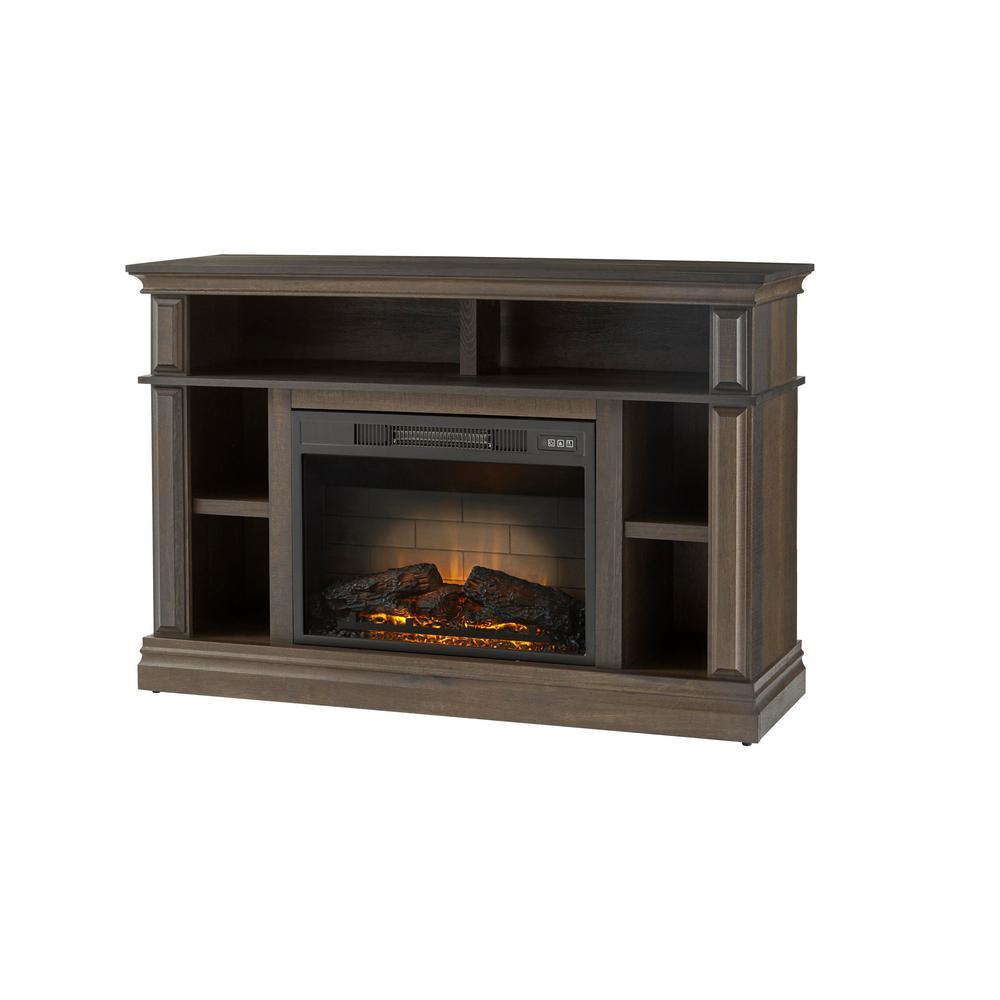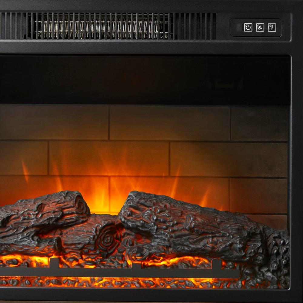 The 48 in. Electric Fireplace will transform your living room or family room into a warm, comfortable and stately showplace. The quality construction of hardwoods and laminates are made even more impressive by the craftsmanship of the Brown Oak finish. Enjoy family gatherings, game day parties and date nights in front of a cozy fire. The Console offers realistic log and flames with energy efficient LED technology and 4 flame heights. Enjoy cozy fires year round with or without heat. With its 4,600 BTU coil heater, the electric fireplace can warm even the largest rooms. Control the flame display with the handy remote control. The fireplace console can accommodate flat panel TVs and includes cabinets for storing media and gaming accessories. Now any room can be a cozy haven with the Fireplace Console. For flat panel TVs (not for use with CRT TVs) Sturdy hardwood construction Durable Brown Oak finish Cabinets store your media and gaming accessories Console requires assembly 23 in. electric fireplace insert 1,400-Watt/4,600 BTUs of coil heat Realistic logs and embers Easy set up - plugs into standard 120-Volt/60 Hz electrical outlet.
