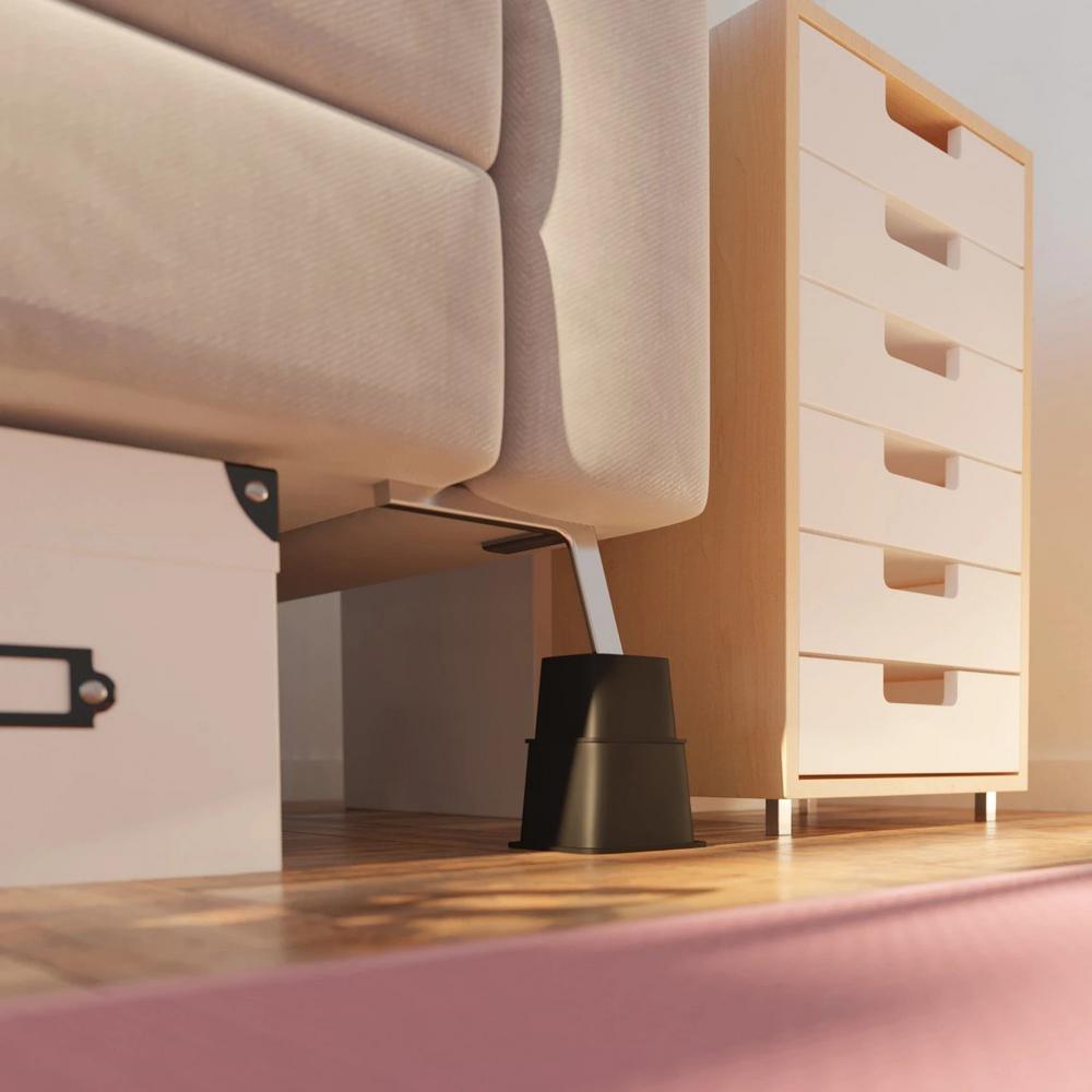 Adjustable Bed Risers are the best solution if you are thinking for Bed, Furniture, Sofa, Table or Chair Raise. This 8-piece set of plastic bed risers allows you to raise your bed, dresser, table or chair by 3 in., 5 in. or 8 in. Add more height to your bed or furniture without worry of the risers breaking with this heavy duty product. Bed and furniture risers are super easy to use. Simply place risers in bed or furniture area and insert the bedposts to place on top the recessed walls of the risers. Recessed walls ensure safety and that our bed or furniture do not slip and fall.
