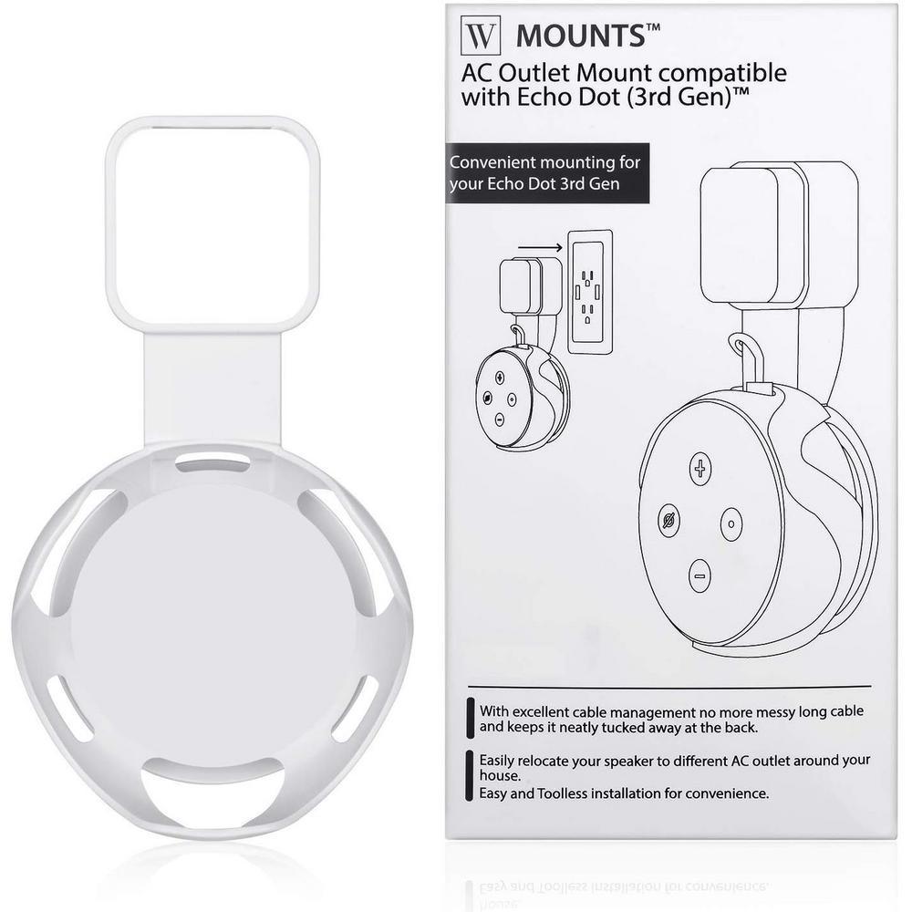 Take your Alexa smart speaker anywhere in your home. The Wasserstein AC Outlet Mount allows you to mount your Amazon Echo Dot (3rd Gen) to an electrical outlet, eliminating the need to set up long and messy cables.