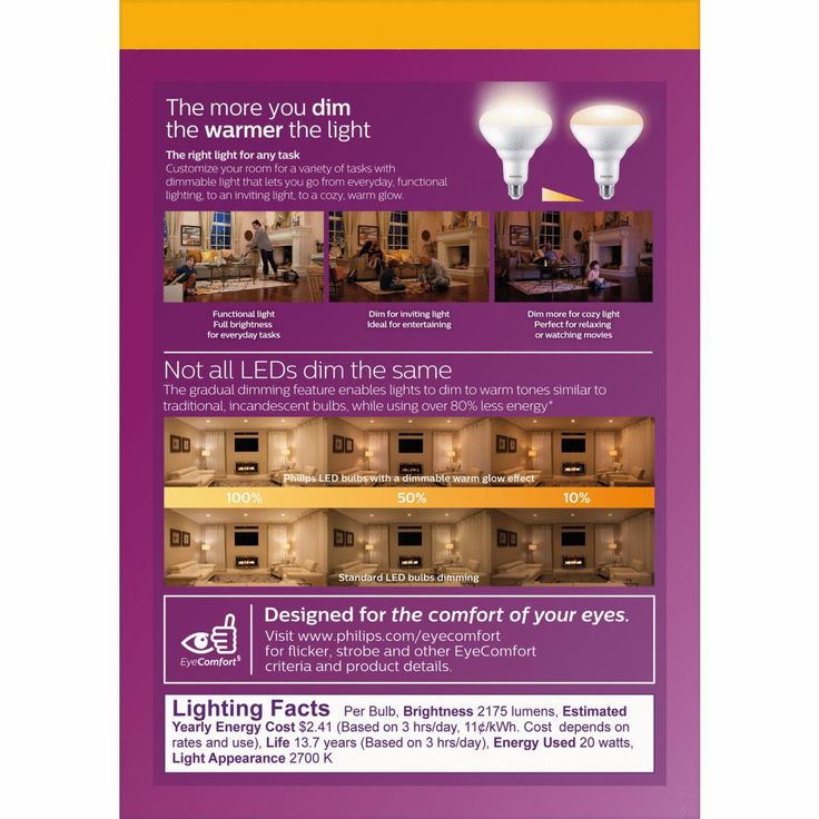 Regular price $24.90The more you dim, the warmer the light with the Philips BR40 Flood Light, featuring a fully dimmable, warm glow light effect. This LED BR40 offers a new experience for dimmable LEDs by creating a soft, diffused light and smooth dimming from 2700K to 2200K. As the light is dimmed, the color temperature is reduced and creates a warm, relaxing ambiance. Until now, this warm, dimming effect was only available in dimmable halogen and incandescent light bulbs. Now you can enjoy the perfect alternative for those household applications where ambience is as important as lowering energy bills and reducing the hassle of frequently replacing light bulbs. This bulb is ENERGY STAR Certified and ideal for residential use in kitchens, living rooms, dining rooms, bedrooms and dens, as well as commercial use in restaurants and hospitality applications. It is perfect for recessed cans or track light fixtures, offering soft white light for a pleasant and inviting feel.