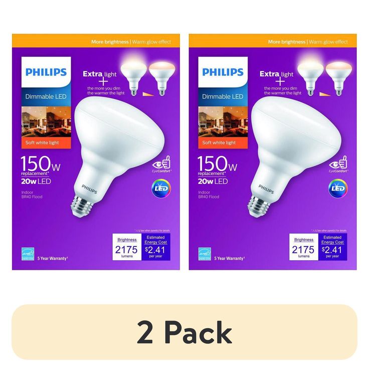 Philips 150-Watt Equivalent BR40 Dimmable with Warm Glow Dimming Effect Energy Saving LED Light Bulb Soft White (2700K) (2-Pack)