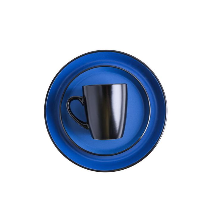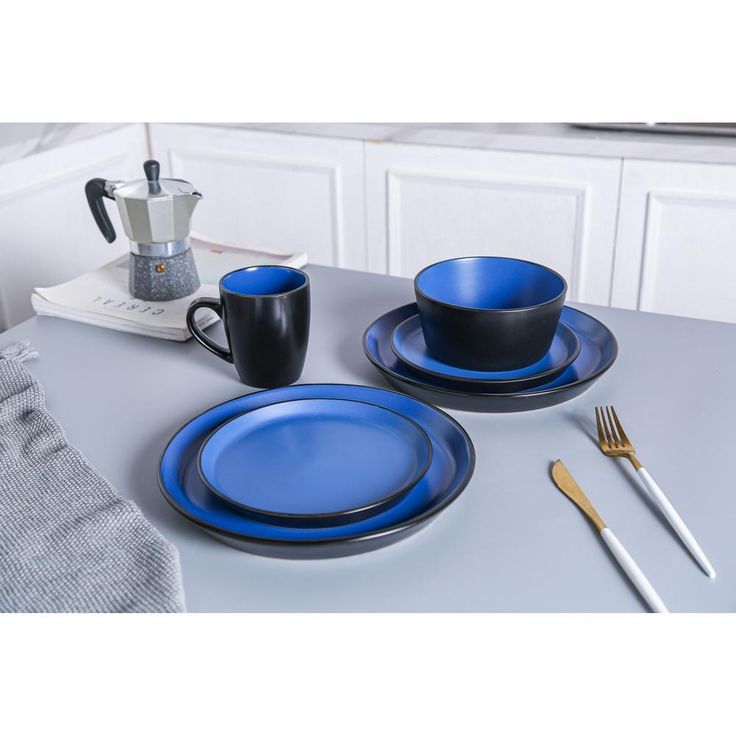 32-Piece Casual Blue and Black Stoneware Dinnerware Set (Set for 8)
