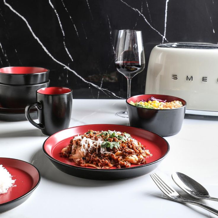 32-Piece Casual Red and Black Stoneware Dinnerware Set (Set for 8)