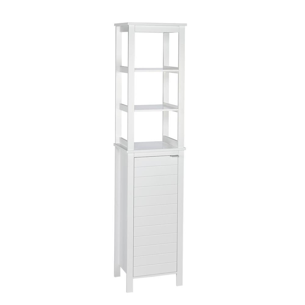 Give your space a clean, new look with RiverRidge Madison Collection Linen Tower with Open Shelves. Features 3 fixed shelves above and 3-shelves behind cabinet door (2 fixed and 1 adjustable). Additional dimensions: open shelves: 11.75 in. W x 11.44 in. D x 9.44 in. H, space between open shelves: 10.88 in. H, interior shelves: 11.75 in. W x 10.75 in. D, interior fixed shelf: 10.88 in. H and space between 2 bottom interior shelves: adjustable.