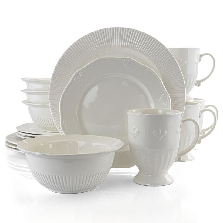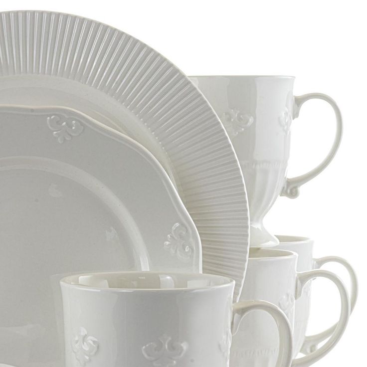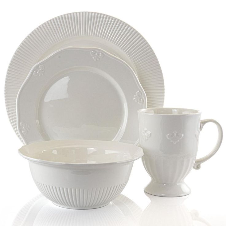 Scallop Crest 16-Piece Casual White Ceramic Dinnerware Set (Service for 4)