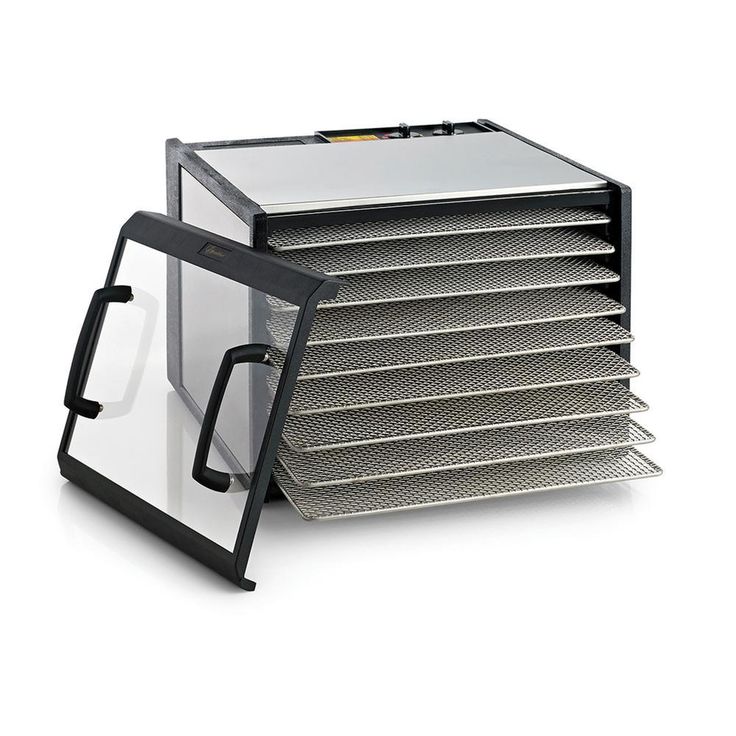 9-Tray Electric Food Dehydrator with Stainless Steel Trays and Clear Door Features 26-Hour Timer