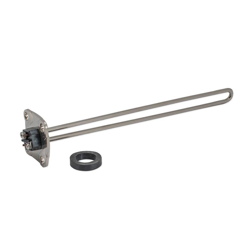The Eastman Straight Water Heater Element has a high watt density and has a wattage and voltage of 240V x 4500W and has an 12-inch minimum tank diameter. It features a universal flange mount with gasket and is coated with a copper sheath which helps in resisting corrosion. It has a straight element design. The water heater element is designed for use in all replacement situations if the same wattage and voltage are used. This element is the most commonly used in most water heaters. Do not exceed the rating listed on the water heater.