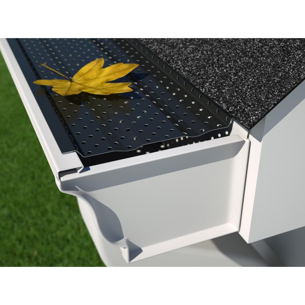 E-Z Smooth Flow is an effective and simple-to-install powder coated aluminum gutter guard which recesses into the gutter and fastens to the front with stainless steel screws (provided). The rain passes through canals fills with thousands of holes, making it easy for air flow. The debris can then dry and blow away. Made for K-style gutters. The black color can help snow and ice melt faster from gutters.