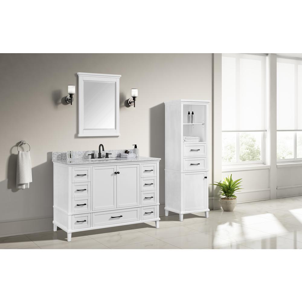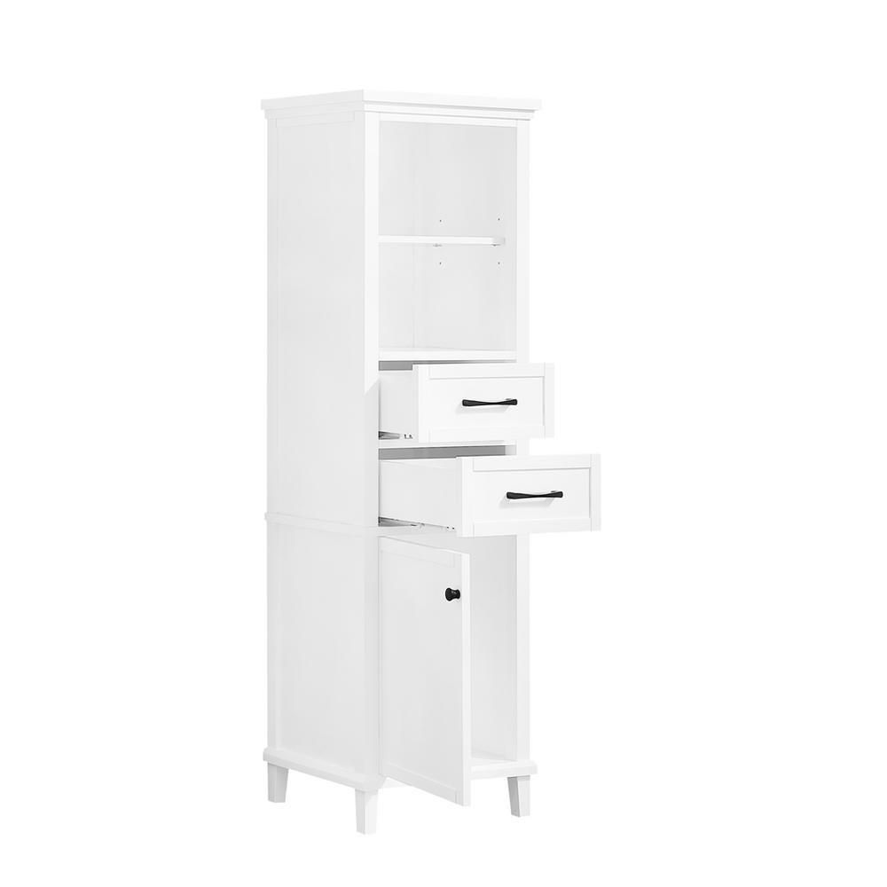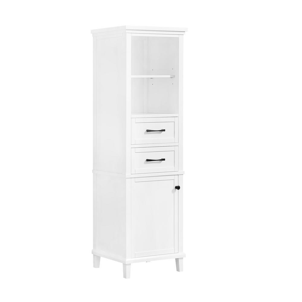 Restore beauty to your bathroom with the Merryfield 20 in. W x 16 in. D x 65 in. H Floor Linen Tower in White. Black finish hardware, ample storage space, soft-close glides and hinges and a solid wood frame attest to the exceptional build of this cabinet. Combine it with the Merryfield collection of vanities or as a standalone item.