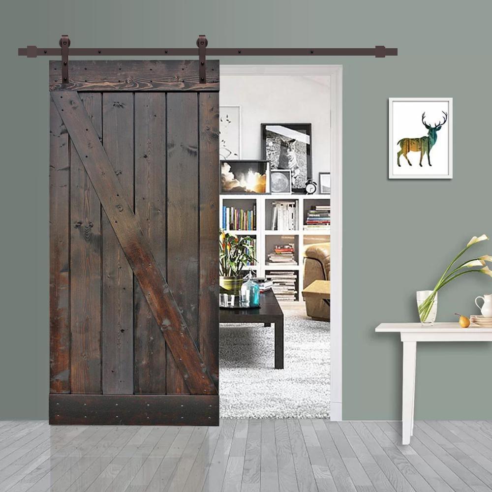 Z Series 42 in. x 84 in. Dark Coffee Stained Solid Knotty Pine Wood Interior Sliding Barn Door with Hardware Kit