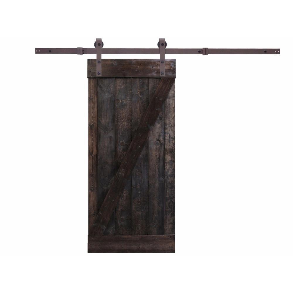 • Set includes 1 set of door planks (assembly required) 1-sliding track hardware set, all bolts come in matching finish color; door hardware weight capacity: 150 lbs. track length: 8 ft (96 in.) hardware color finish: dark coffee