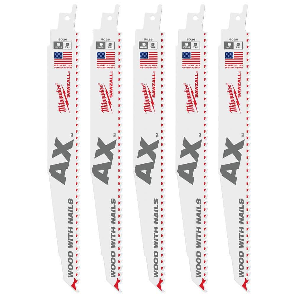 Upgrade your demolition cuts with Milwaukee’s 9 in. AX blades and get fast, straight performance through wood with nails—add the 5‑pack to your cart now.