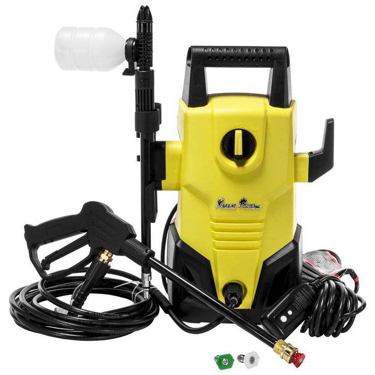 The XtremepowerUS Mini Electric Pressure Power Washer is constructed with a powerful 10 Amp motor that generates 1300 psi of maximum water pressure and a maximum flow rate of 1.2 GPM for light to medium-duty cleaning application. This pressure washer is ergonomically designed to have easy-grip handles and on-board hose reel attachment allowing for easy clean-up and compact storage. The color-coded spray tips lets you conveniently select the appropriate nozzle size to tackle the toughest cleaning jobs, starting with the lower pressure nozzle before working to higher pressure for the best results. Equipped with extra-long 30 ft. power cord and quick spray gun to provide wider cleaning surface and extended reach for hard to reach places. This multi-functional pressurized jet machine will pack plenty of power to efficiently blast away dirt, grease, grime, mildew, rust and oil from your home driveway, sidewalk, garden, outdoor furniture, vehicles and more.