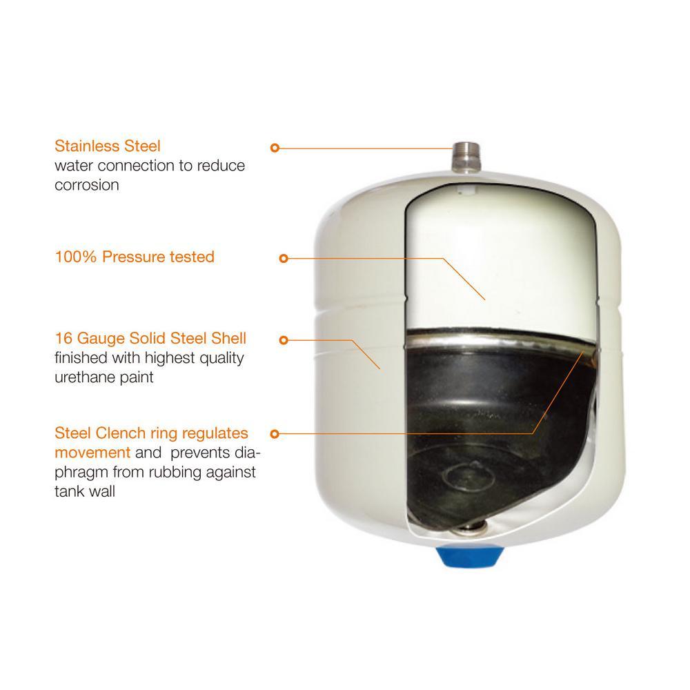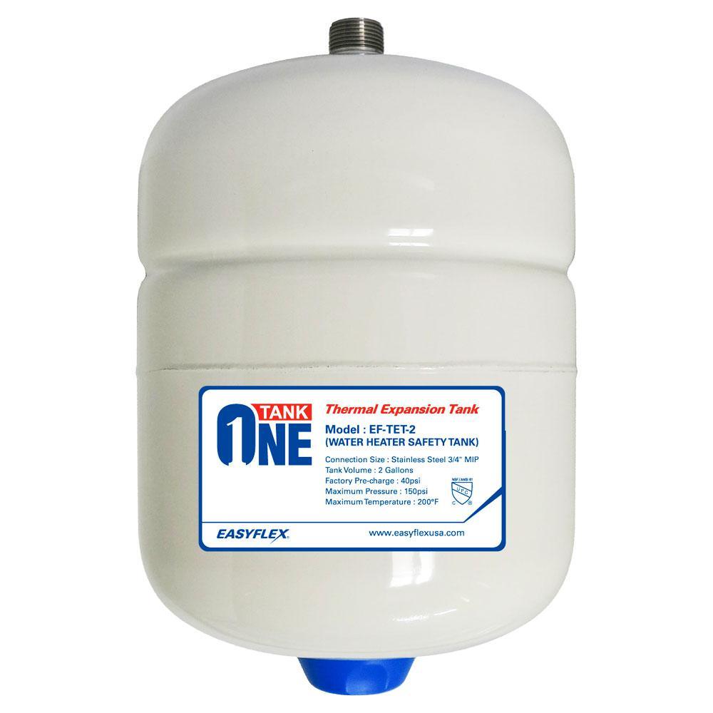EasyFlex Tankone is designed to maintain safe pressures in a domestic water heating system that utilizes a backflow preventer or check valve. Tankone features a butyl rubber diaphragm and plastic liner to separate the system water from the tank's air charge. The system connection has a stainless steel nipple to prevent corrosion. High quality coating on the shell will help to prevent external corrosion. Every Tankone tank is comprehensively tested and backed by an Easyflex 5 year limited warranty.