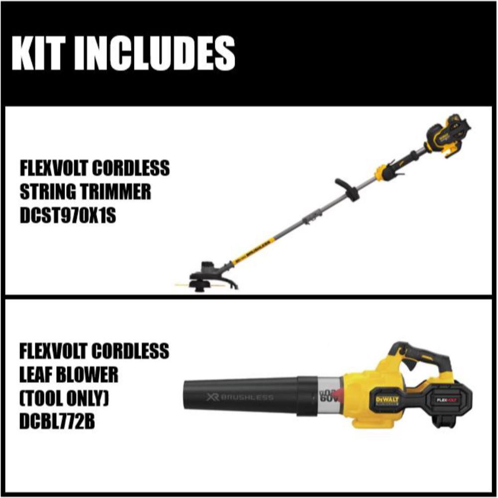 The DEWALT 60-Volt MAX String Trimmer is designed to power through tough overgrowth and withstand everyday heavy-duty usage. It features a high-efficiency brushless motor that maximizes runtime and motor life and its lightweight and ergonomic design maximizes control and minimizes stress on your arms. It has a 60-Volt MAX FLEXVOLT battery that powers 60-Volt MAX tools or it can be backwards compatible to work with 20-Volt MAX tools. DCBL772B As part of the 60-Volt MAX FLEXVOLT battery system of high-powered products, the 60-Volt MAX FLEXVOLT Brushless Handheld Axial Blower powers through your task with up to 600 CFM of air volume and 125 MPH. It features a variable speed trigger and speed lock to control the blower output. The brushless motor design is high efficiency to provide high power and helps extend runtime. Battery or charger not included.