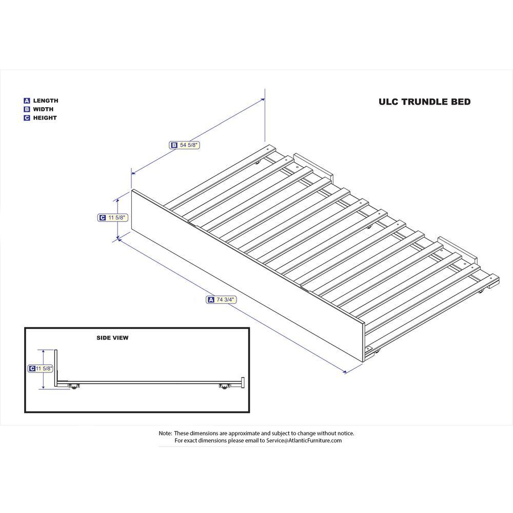 Need more sleeping space? Look no further than the sleek simplicity of an Atlantic Furniture Urban Trundle Bed. Our full-sized trundle beds, compatible under full sizes of select beds, roll out from either side of the frame for extra sleeping space.