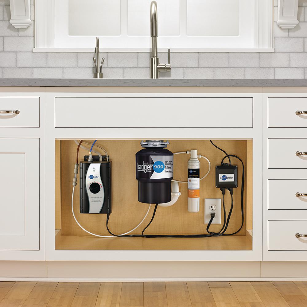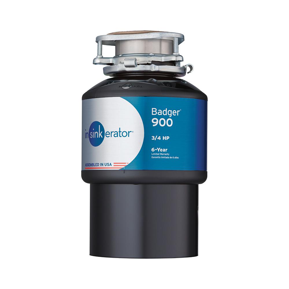 Badger Food garbage disposals are a reliable and functional choice when affordability is the prime concern. Badger 900 features a 3/4-horsepower heavy-duty quiet Dura-Drive induction motor and rugged galvanized steel construction for disposer durability. This disposer also features a space-saving compact design to save space under the sink.