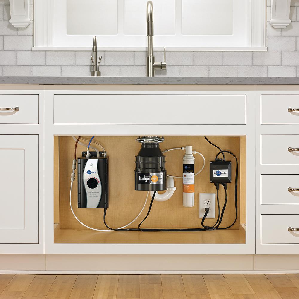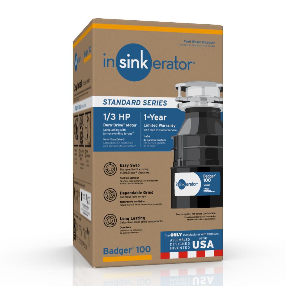 Badger Food garbage disposals are a reliable and functional choice when affordability is the prime concern. Badger 100 features a 1/3-horsepower heavy-duty quiet Dura-Drive induction motor and rugged galvanized steel construction for disposer durability. This disposer also features a space-saving compact design to save space under the sink.